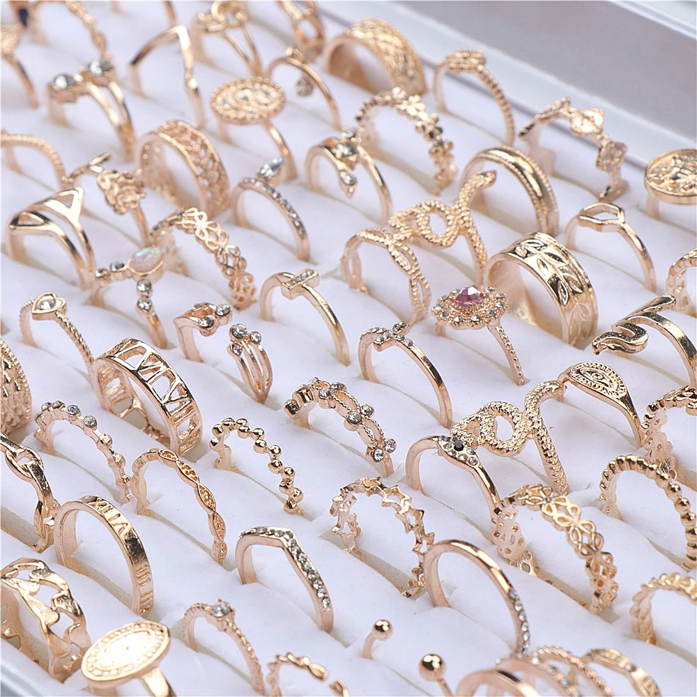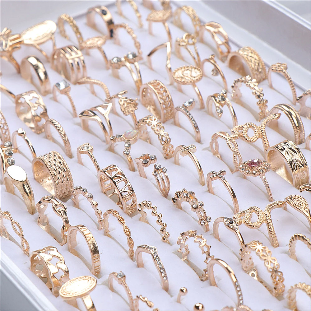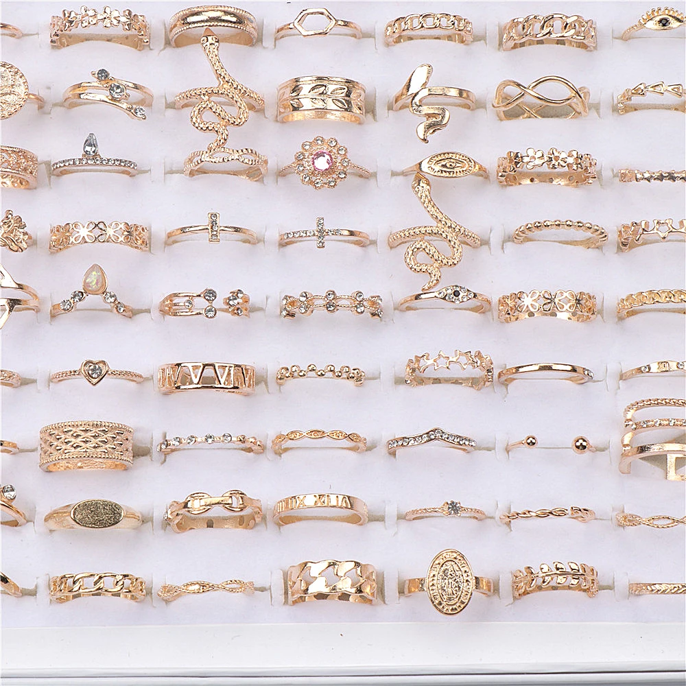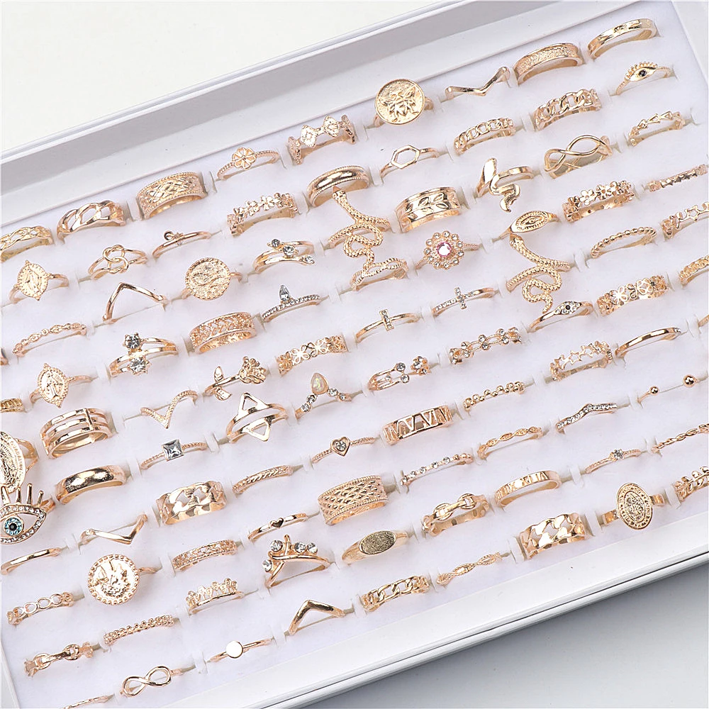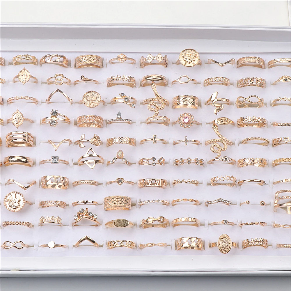 100 шт.лот Модные полые Звезды Корона любовь позолоченные металлические кольца для женщин смешанный стиль Свадебные украшения подарки для вечеринок