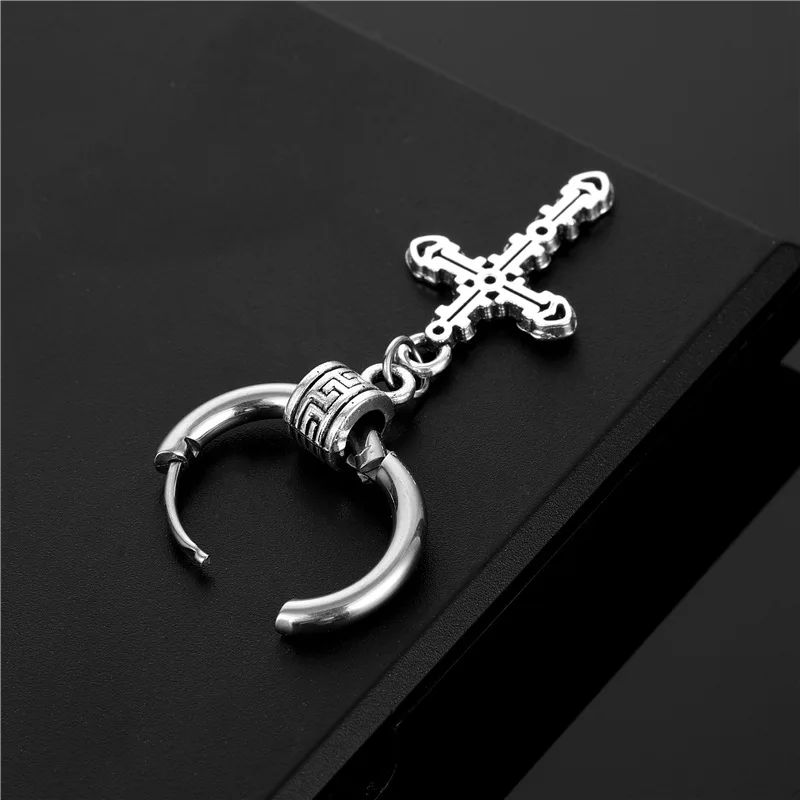 Серьги-кольца из нержавеющей титановой стали с крестиком для мужчин...