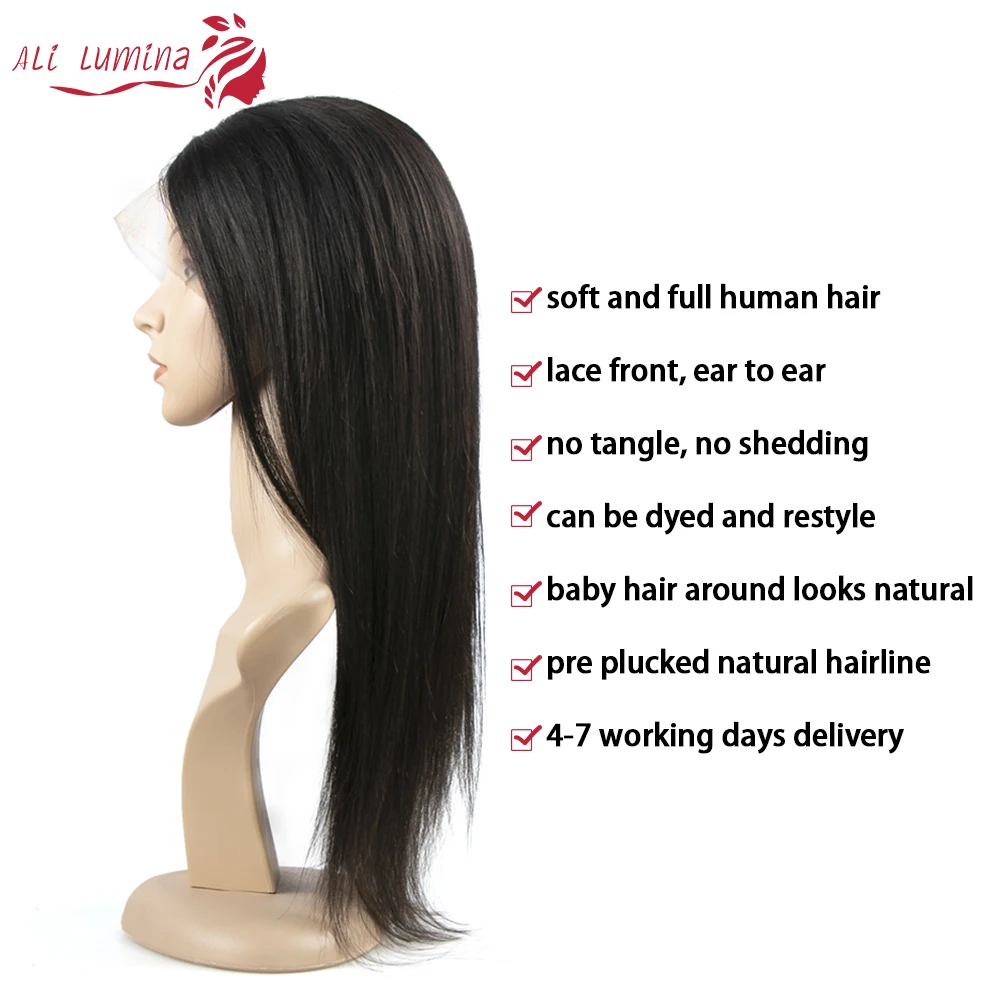 Длинный прямой парик на сетке спереди, парики из человеческих волос, прозрачный парик на сетке спереди, для женщин, парик без повреждений из вьетнамских волос 13x5x2 4x4