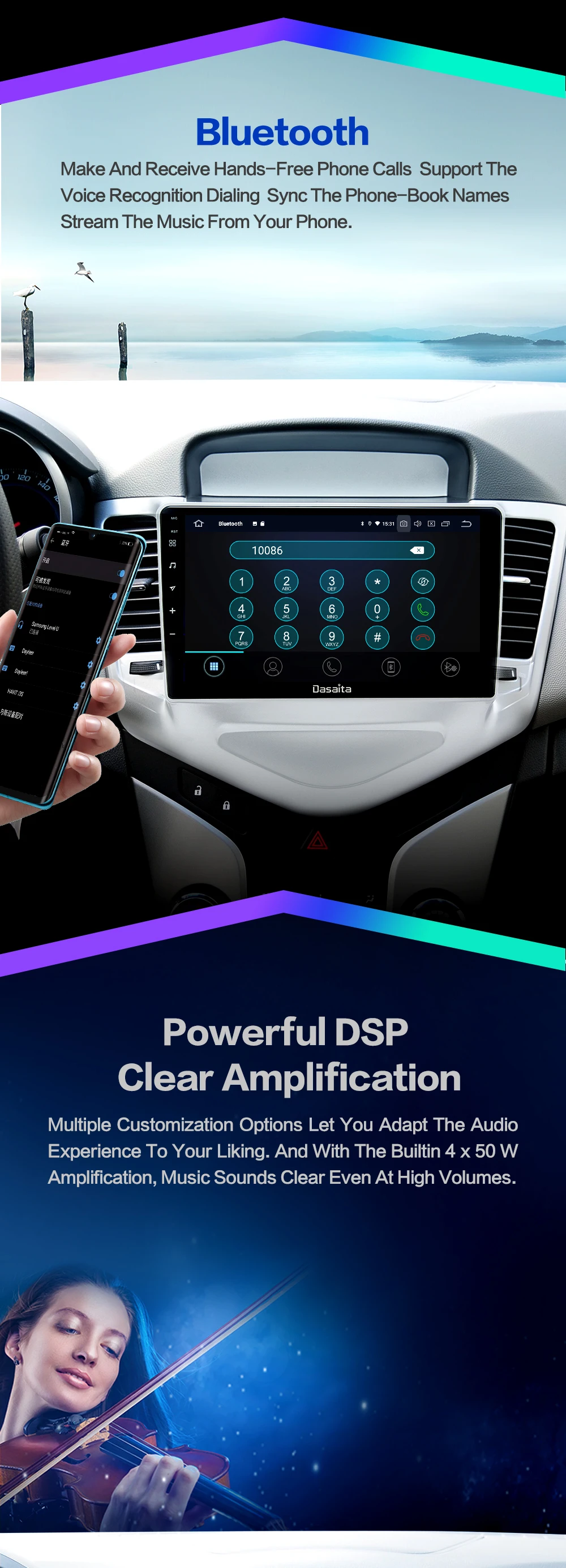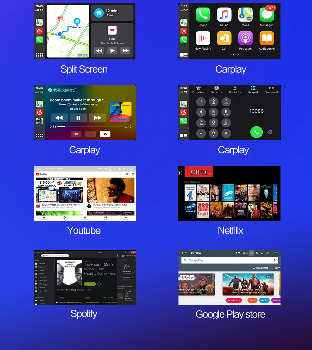 1. Высокое разрешение 1080P: полноёмный сенсорный экран для удобства эксплуатации, хорошо разработанный пользовательский интерфейс только для автомобиля2. Встроенный GPS Прием: пользователи могут приобрести напрямую из play store для автономной навигации. С Wi-Fi подключен, Google Maps может использоваться идеально, вы можете пойти куда угодно и никогда не потеряться снова!3. Встроенный WIFI: подключение к WIFI, и вы найдете новый мир, самый удобный-это онлайн-карта.4. Камера заднего вида: необходимо выбрать камеру, автомобиль подключен к обратной передаче для автоматического переключения (требуется дополнительно)5. Управление рулевым колесом: через него вы можете управлять функциями, которые вам нужны, с помощью рулевого колеса, более удобно6. Встроенный Bluetooth 5,0: Поддержка Bluetooth громкой связи, Bluetooth музыкальный плеер, автоматическая загрузка телефонных книг7,9 ''1280*720 супер высокой четкости цифровой экран8. Запись вождения: вы можете выбрать регистратор, и автомобиль имеет воспроизведение, доказательства могут быть сохранены9. Fm-радио: онлайн-музыка, вы можете передавать музыку на автомобильную стереосистему FM, чтобы наслаждаться оригинальным стереозвуком автомобиля10. Поддержка нескольких языков: поддержка языков, до 70 национальных языков11. Вы можете наслаждаться музыкой с вашего мобильного телефона без каких-либо кабелей, а также поддержка USB connetion.