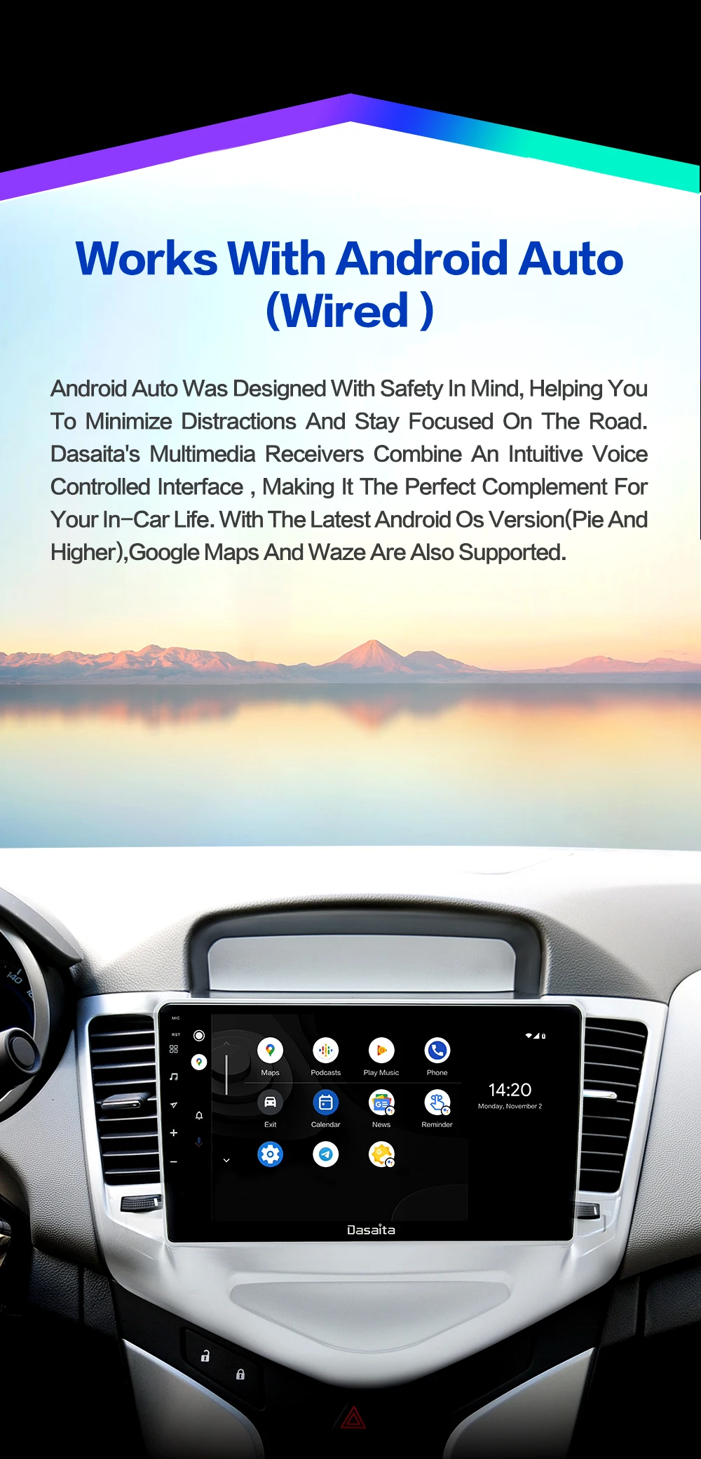 Dasaita 9 "Android 10,0 автомобильное радио 4 Гб + 64 ГБ 1 Din головное устройство с DSP Carplay BT 5.0 GPS навигация для Chevrolet Cruze 2018-2012