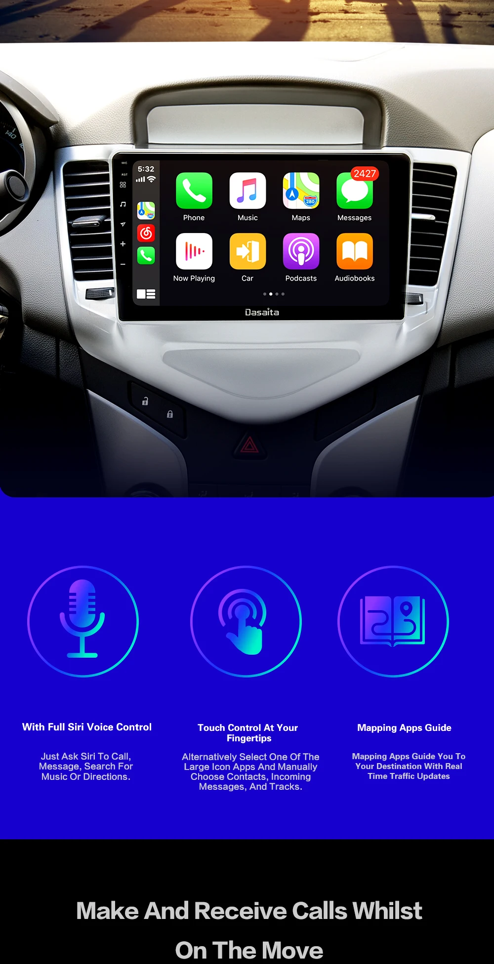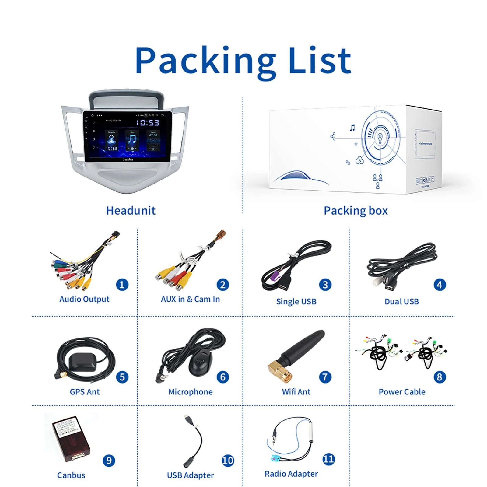 Автомобильная магнитола Dasaita, 9 дюймов, Android 10,0, DSP BT, GPS-навигация для Chevrolet Cruze 2018-2012, 4 Гб + 64 ГБ, 1 Din, головное устройство с Carplay