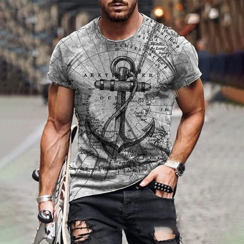 Летняя мужская футболка с 3D-принтом якоря и коротким рукавом, Спор...