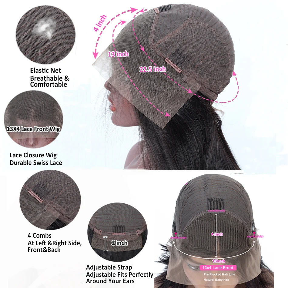 13X4 32 дюйма, парики из человеческих волос на сетке спереди, бразильские волнистые, предварительно выщипанные Детские волосы, волнистые волосы Remy 150%, парик на сетке спереди
