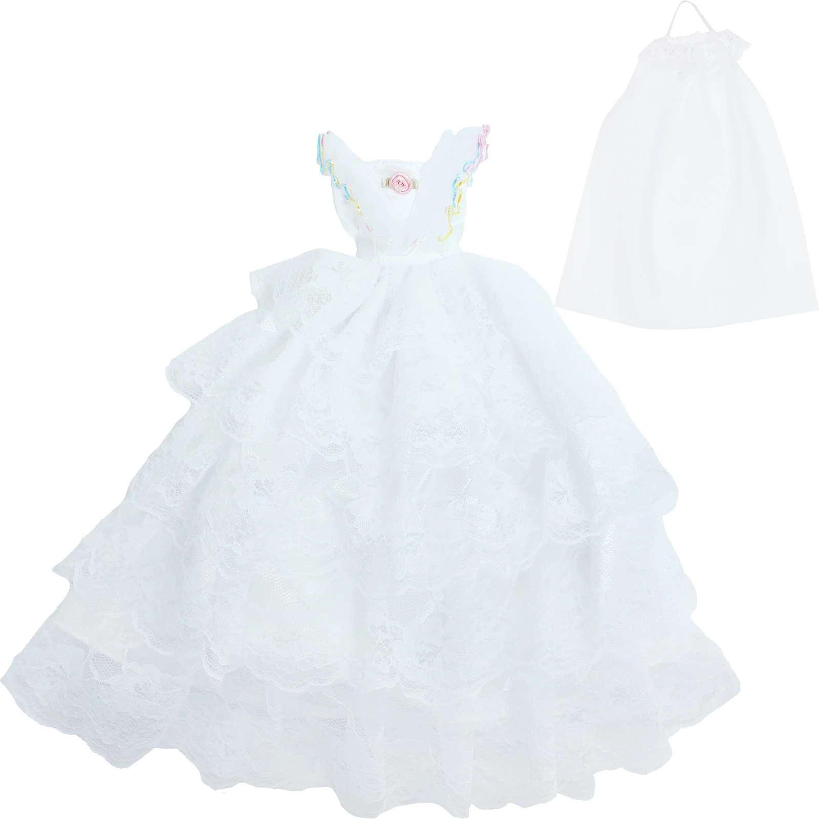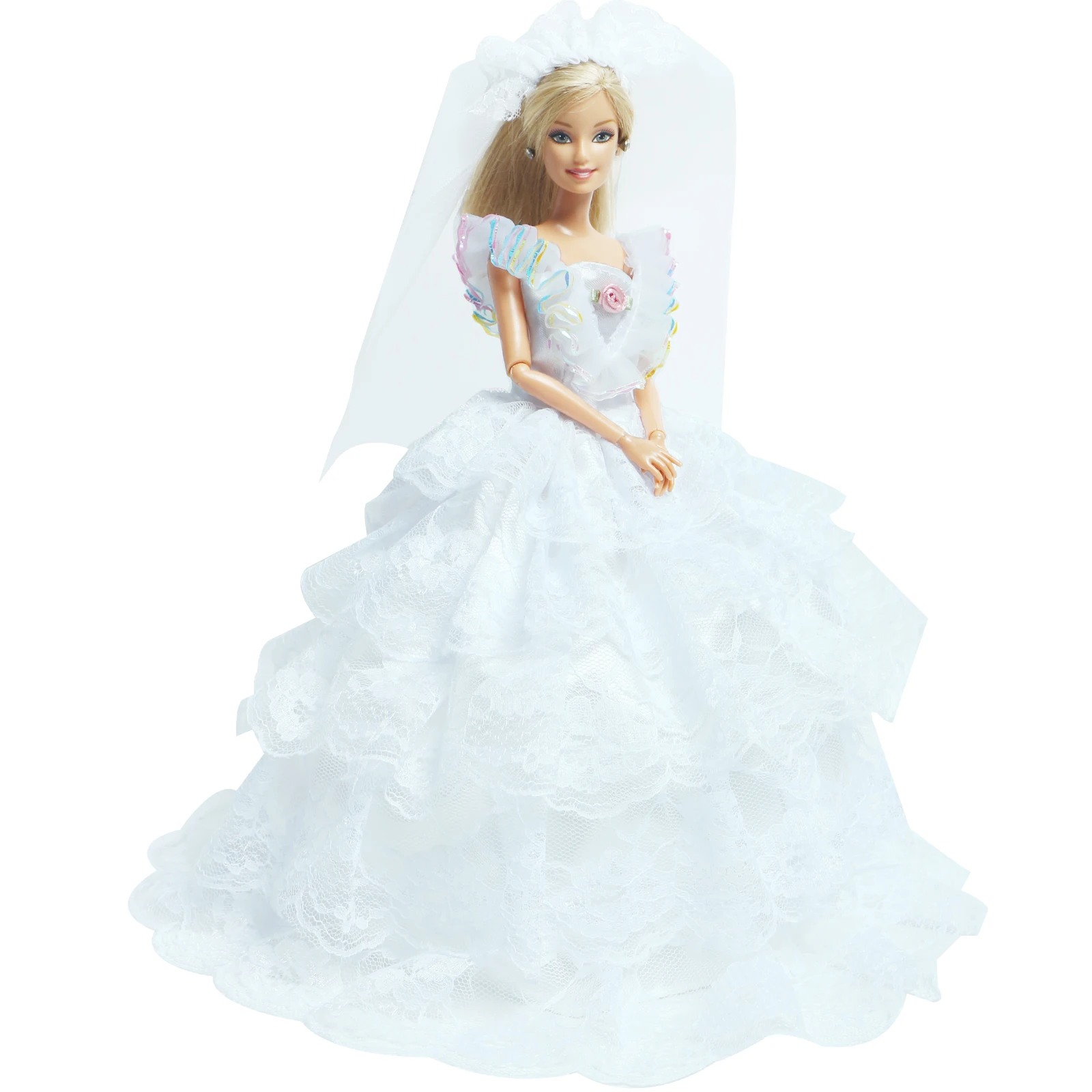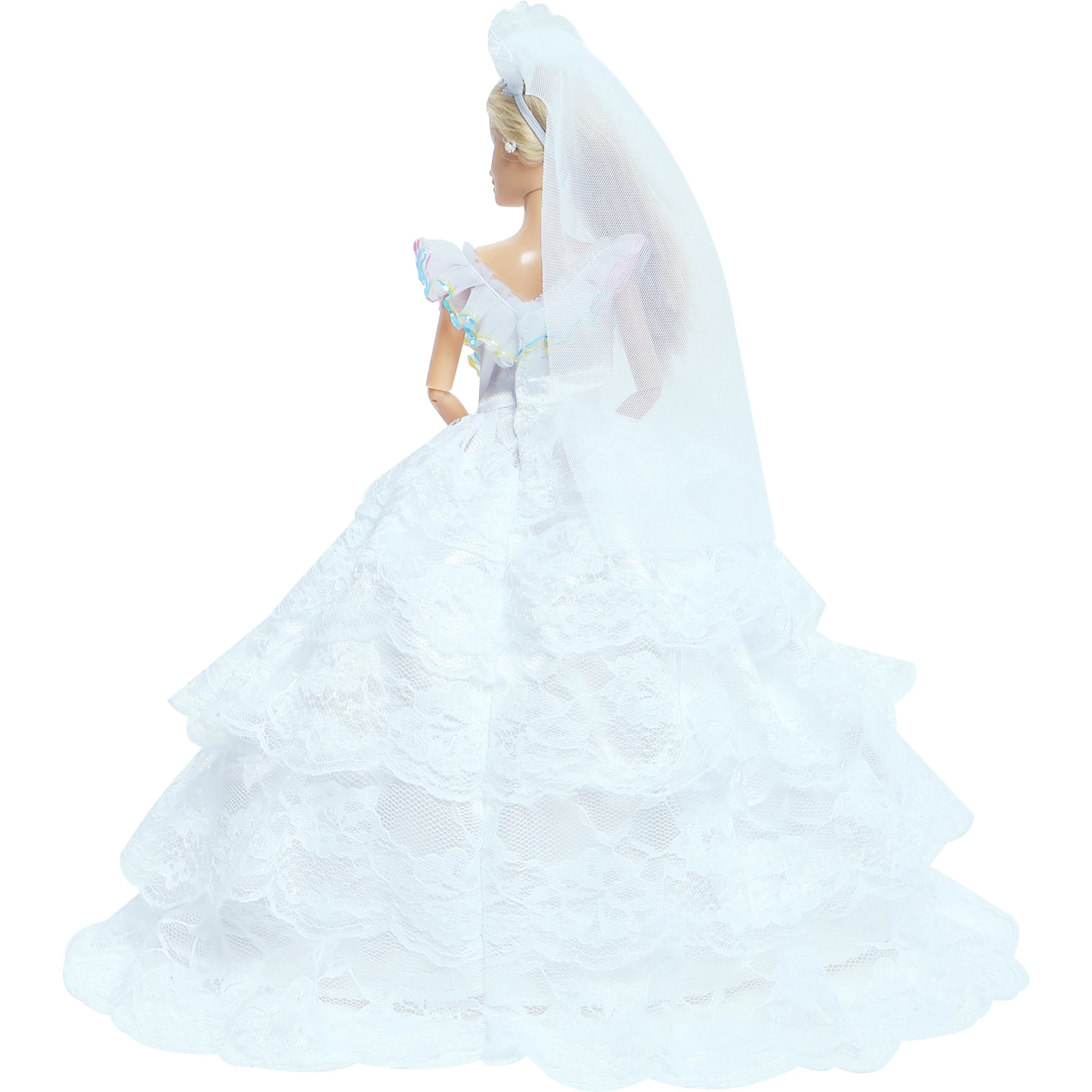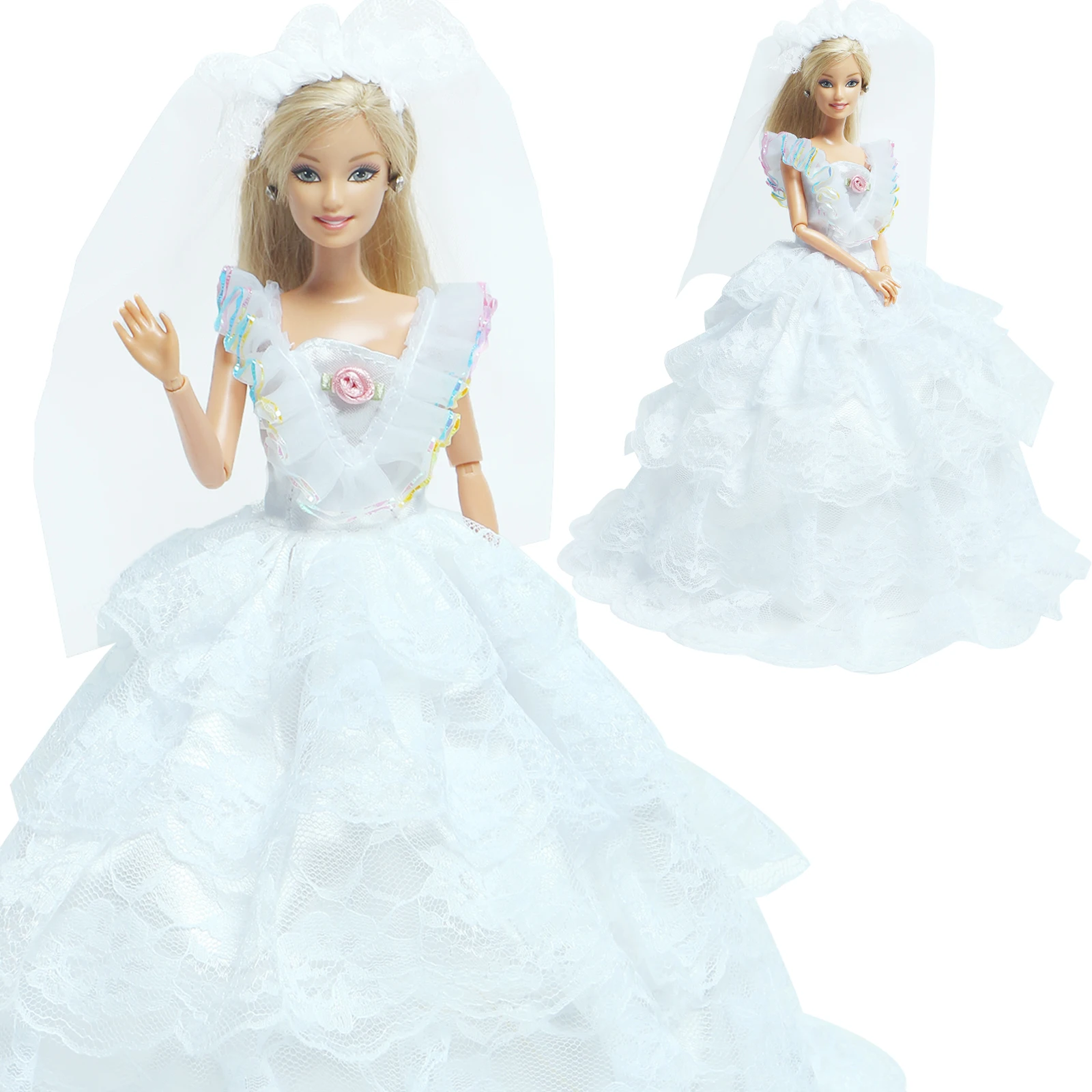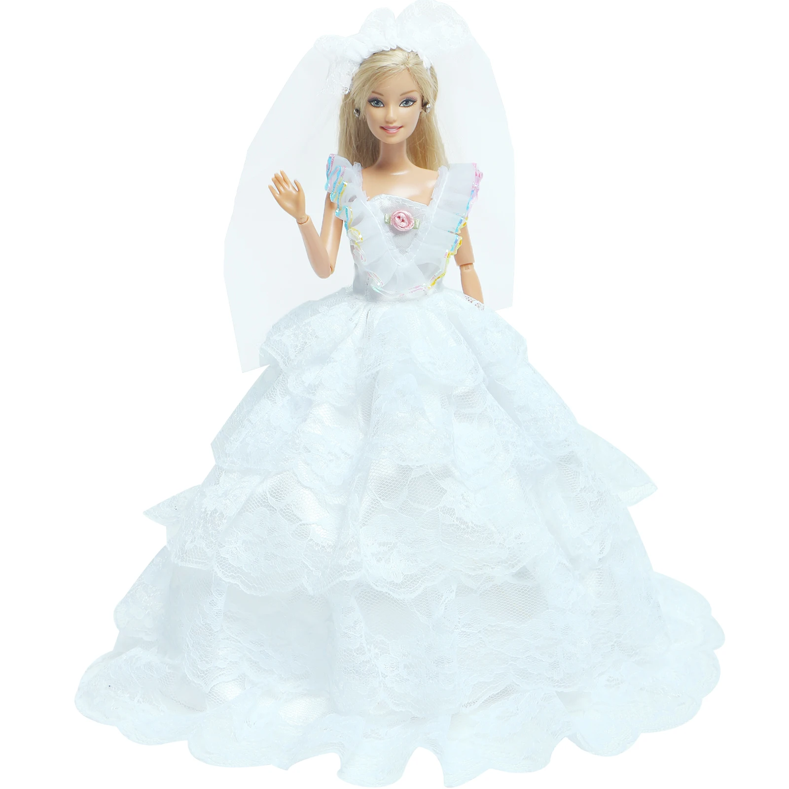 Белое платье ручной работы, свадебное вечернее кружевное платье с вуалью, элегантная одежда принцессы невесты для куклы Барби, аксессуары, Игрушки для маленьких девочек