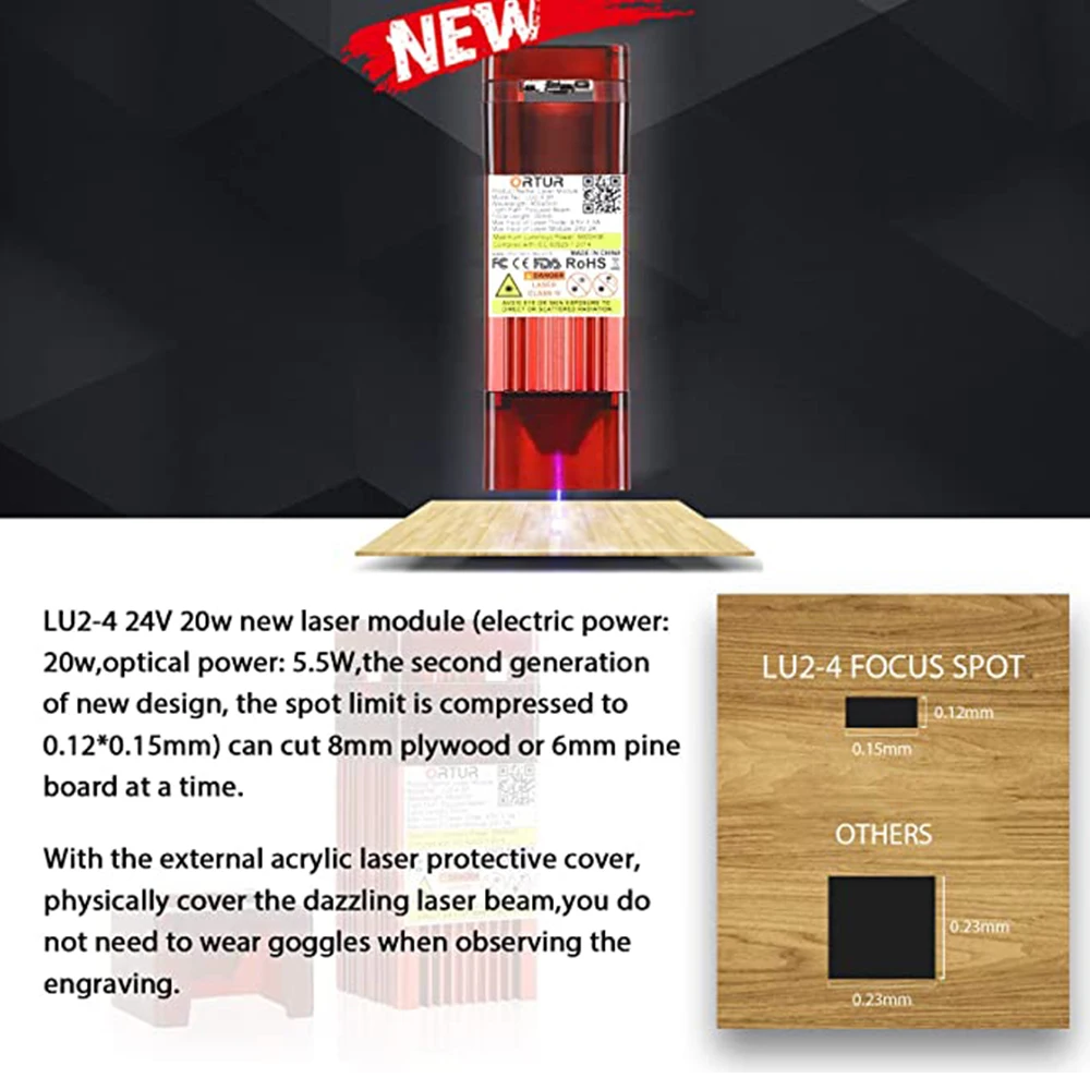 Лазерный гравировальный станок ORTUR Laser Master 2, 32-битная материнская плата, обновленный модуль с фиксированным фокусом второго поколения LU2-4