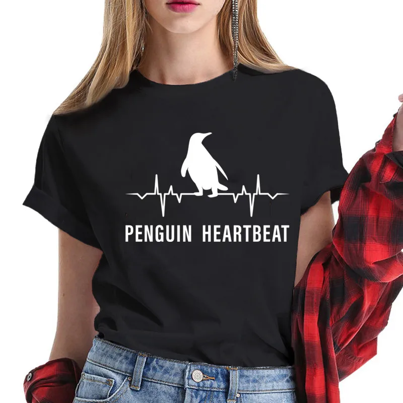 Футболка женская оверсайз с рисунком пингвина и сердцебиения, модная смешная рубашка с круглым вырезом в стиле Харадзюку, на лето