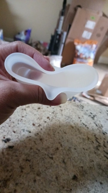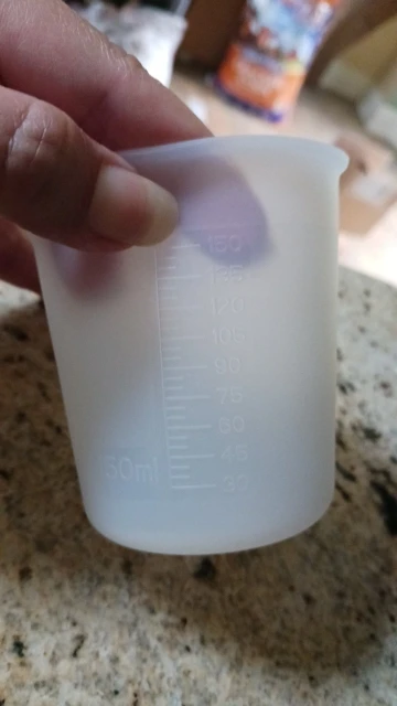 Очень удобный стаканчик, в дороге немного примялся, сейчас он овальный. Шаг шкалы по 15 мл, немного непривычно для нас.