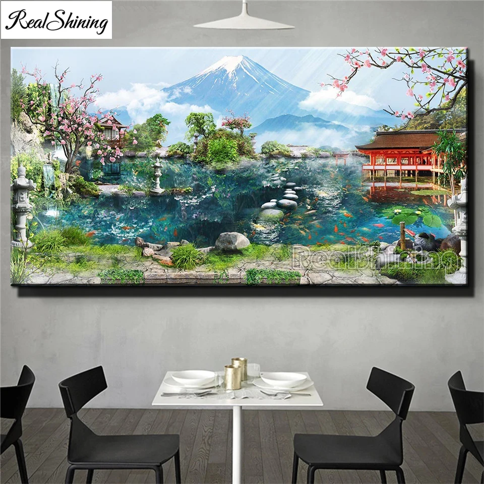 Алмазная живопись Япония Mt Fuji полное сверло вишневый цвет храм 5D DIY мозаика вышивка наборы полная дрель домашний Декор Картина T268