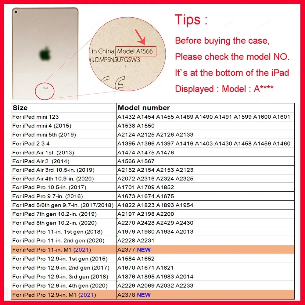 Номер моделиFor iPad Pro 11 2021 Air 4 3 10.5 7th 10.2 Mini 5 2019