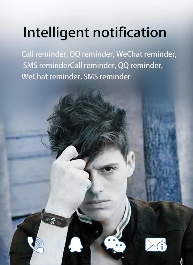 * Дополнительные функции: найти браслет, Будильник Напоминание, удаленное фото, поднимите руку,