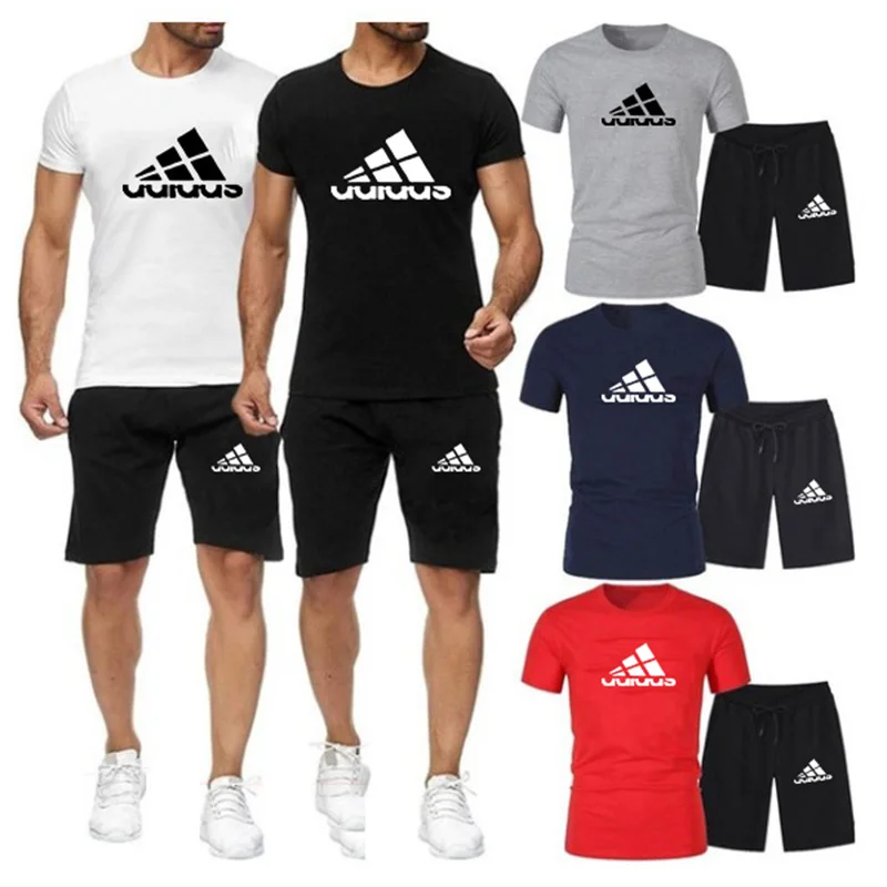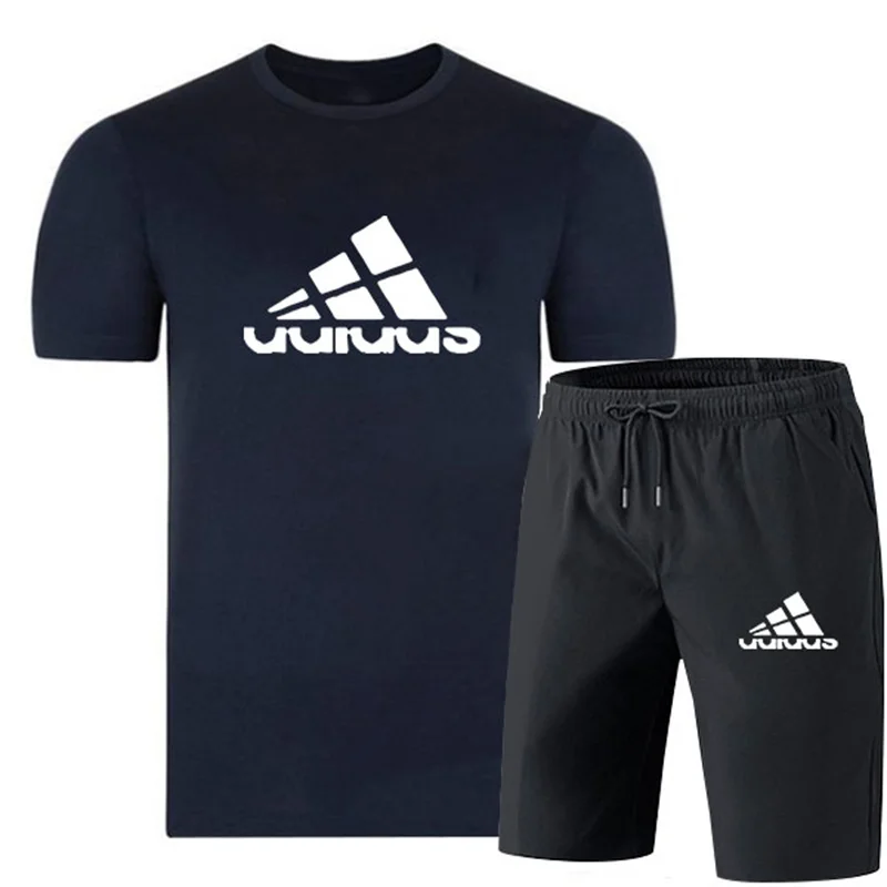 Спортивный костюм мужской повседневный, модная брендовая спортивная одежда, Свитшот и штаны, спортивный костюм с короткими рукавами, 2 предмета