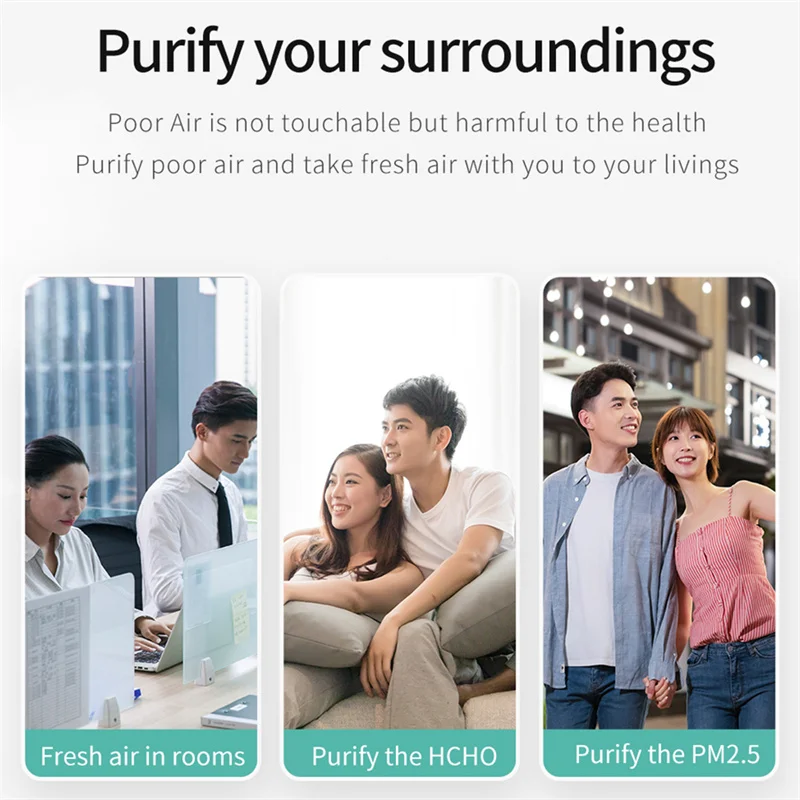 1. Портативный очиститель воздуха-это Многофункциональный Стерилизатор отрицательных ионов, который является экологически чистым и безвредным без фильтров и расходных материалов. 2. Этот очиститель воздуха выделяет высокие концентрации чистых отрицательных ионов для эффективной очистки PM2.5 (скорость очистки 99%), микробов (скорость очистки 90%), формальдегида, смога, пыли и других вредных компонентов в воздухе и улучшения качества воздуха. 3. Около одного кубического метра 28 миллионов отрицательных ионов удерживают вас в диапазоне очистки в любое время, дыша свежим и чистым воздухом, как будто вы носите с собой съемный лес. 4. Очиститель воздуха оказывает хорошее влияние на лечение респираторных заболеваний, головокружения, сердечно-сосудистых заболеваний и отсутствия энергии. 5. Наш очиститель воздуха компактный, изысканный, легкий и портативный, и оснащен шейным ремешком, что позволяет использовать его в качестве ожерелья.