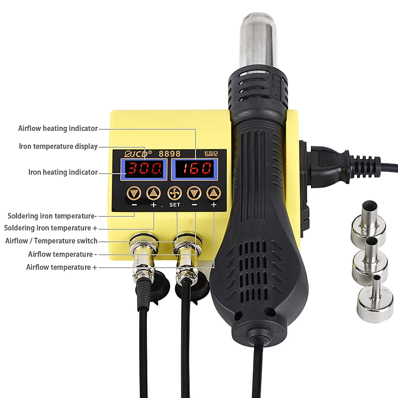 Паяльная станция JCD 750 Вт, паяльная станция с цифровым ЖК-дисплеем, для сварки SMD, Термофен, набор инструментов для ремонта паяльника 8898