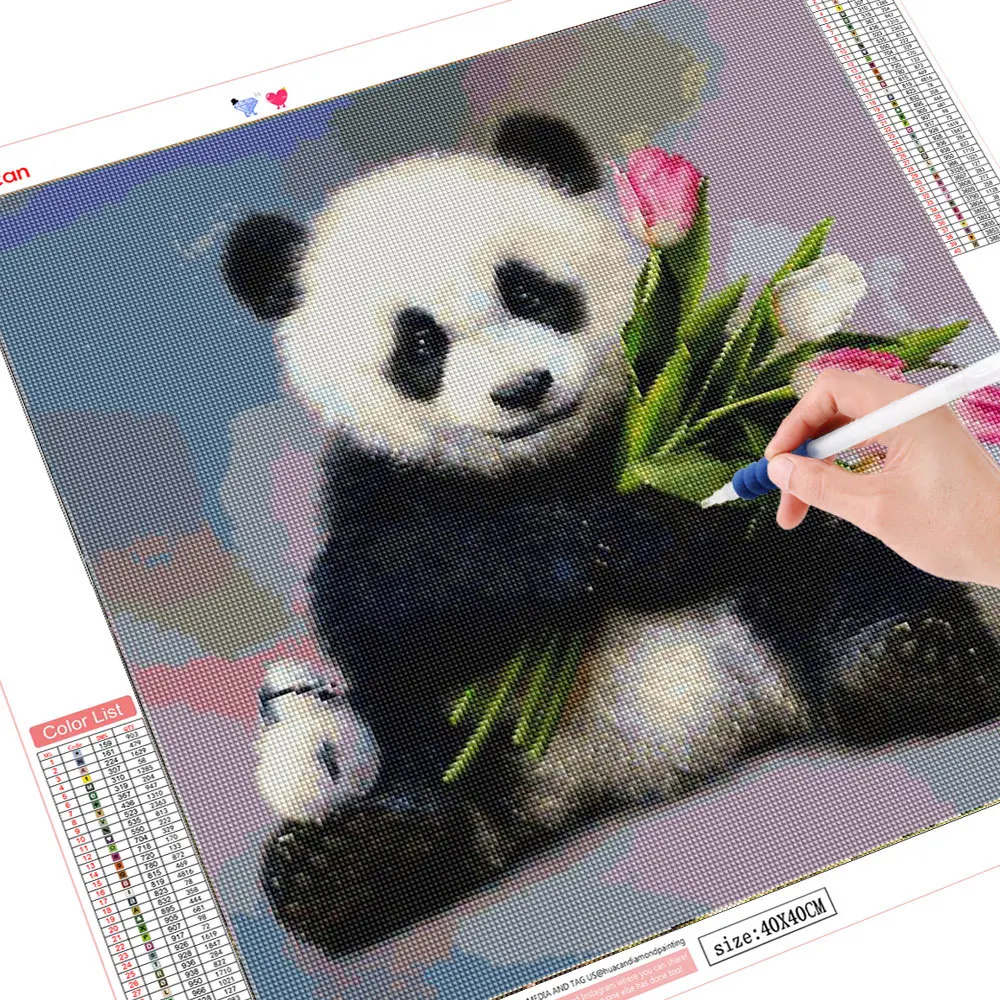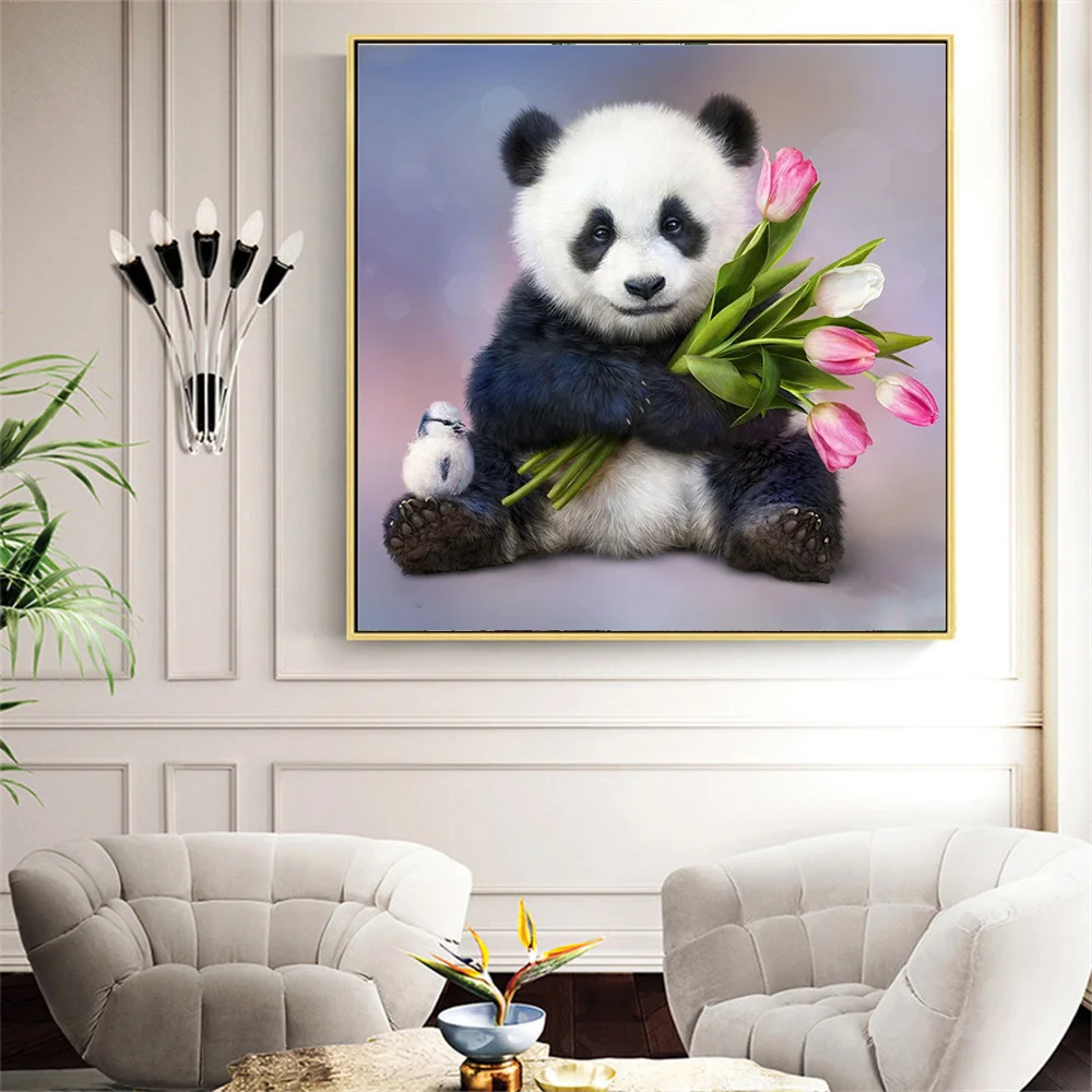 Алмазная 5d картина HUACAN с пандой, мозаика сделай сам, картина с тюльпаном, полноразмерная вышивка с квадратными стразами, набор для домашнего декора с животными