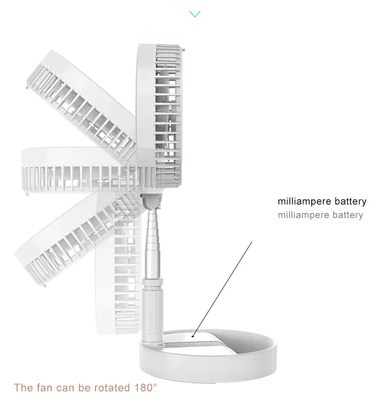 1. Уникальный выдвижной и складной дизайн легко носить с собой. Его можно сложить и расширить в качестве настольного вентилятора и может быть расширен до 106 см в качестве вертикального вентилятора. Различные высоты доступны для вас на выбор.