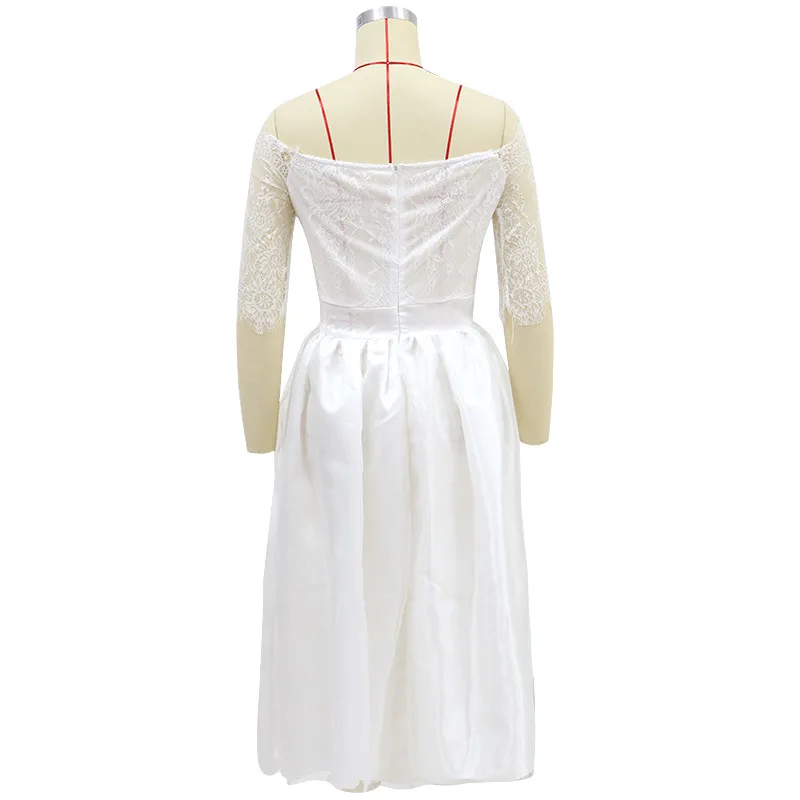 Белое однотонное сексуальное платье с открытыми плечами, летнее платье подружки невесты, юбка принцессы со средней талией и одним словом, с рукавом до локтя