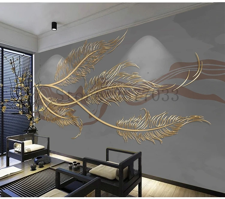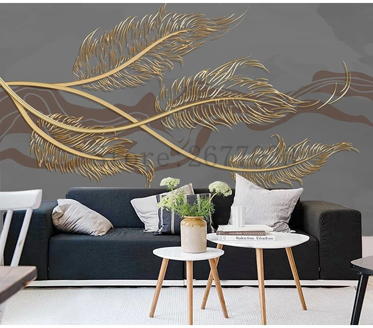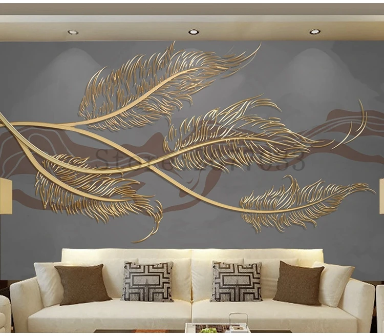 Пользовательские фото обои Золотое Тиснение перо абстрактные линии роспись Гостиная диван фон Настенный декор настенная Ткань 3D Фреска