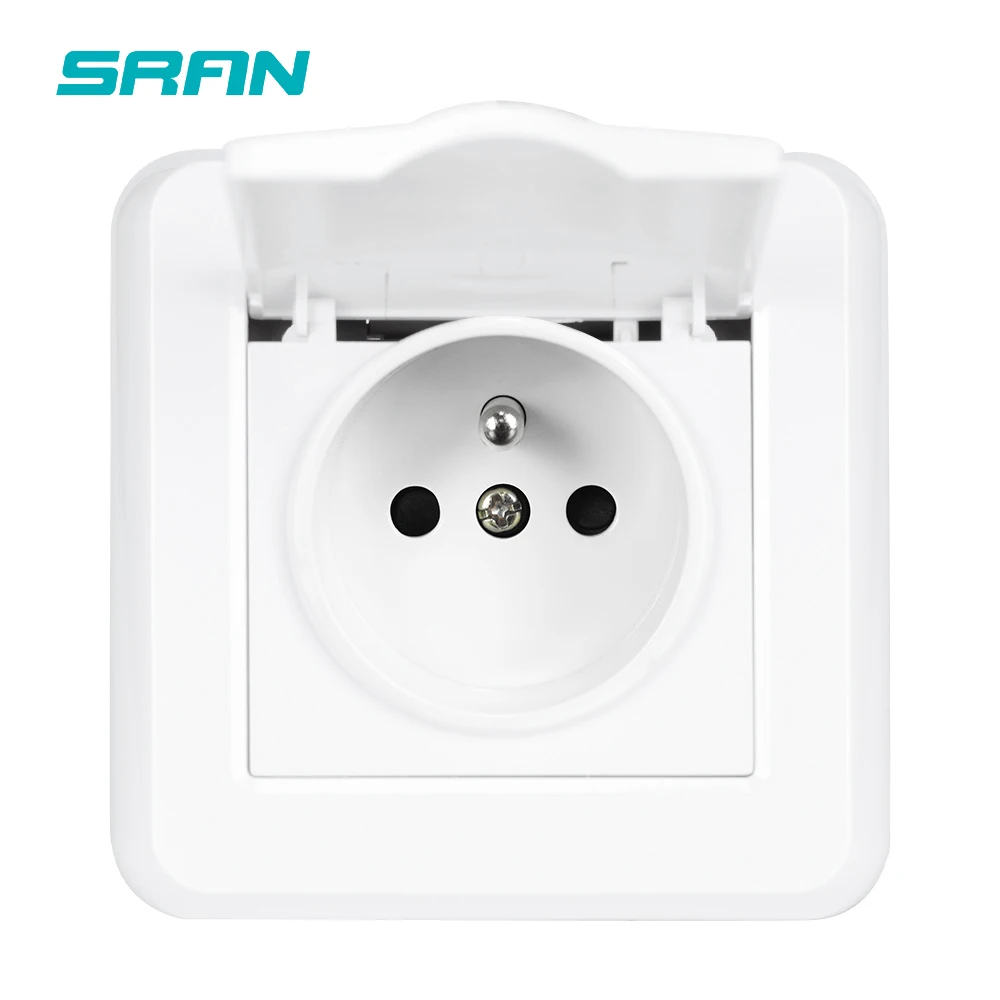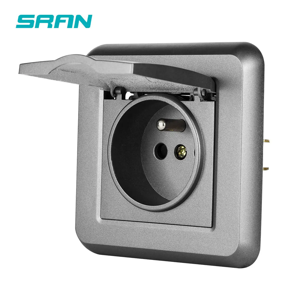 Настенная розетка SRAN, с водонепроницаемой крышкой, 16 А, панель ПК, железная пластина, железный зажим, европейская розетка