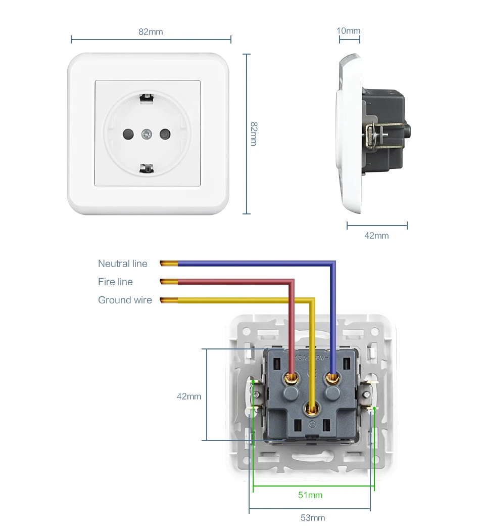 Размер полностью соответствует универсальной кассете европейского стандарта высокого качества, огнестойкая поликарбонатная новая продукция. Четырехсторонняя конструкция для предотвращения столкновений. 250V16A стандартный разъем заземления