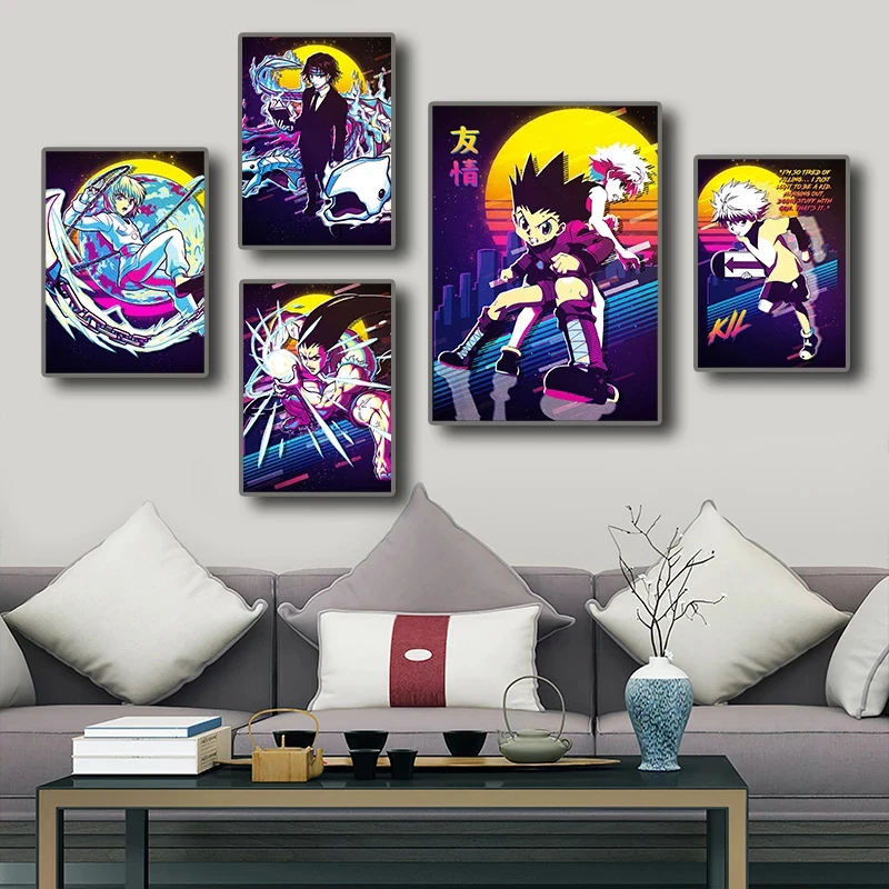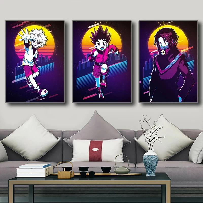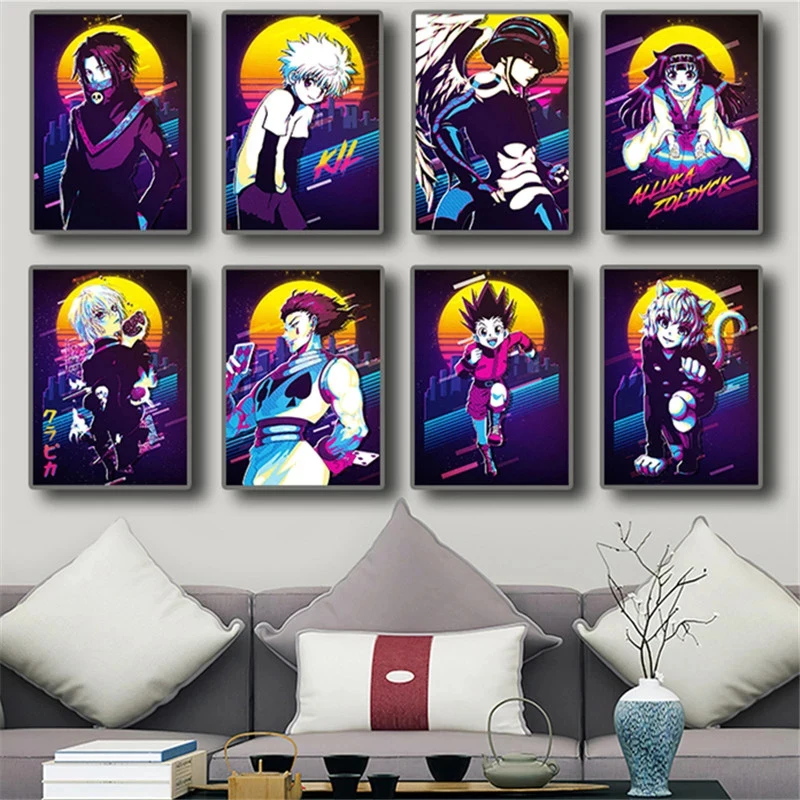 Плакат в стиле японского аниме, ретро, холст, мультяшная настенная ...