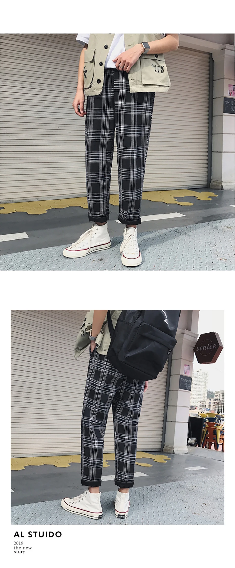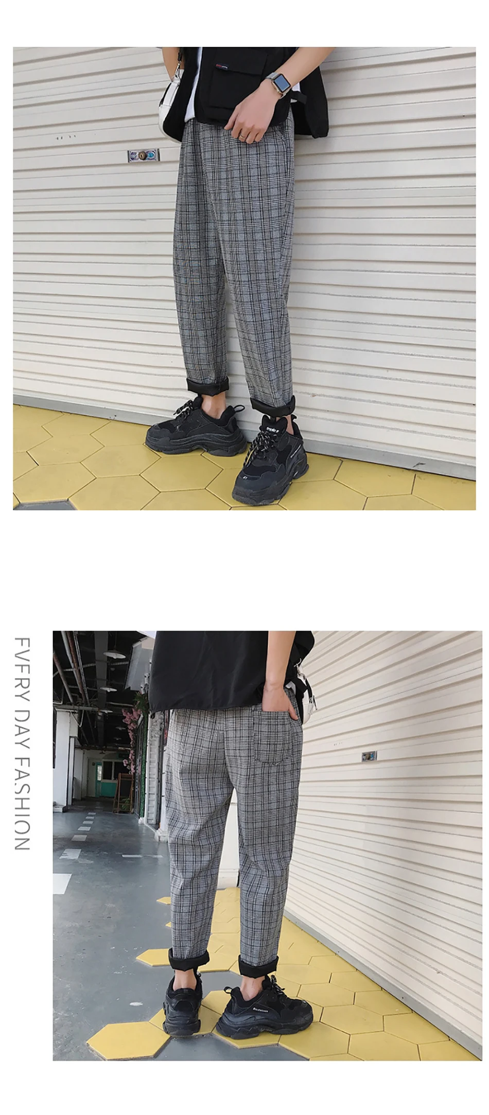 Брюки мужские черные клетчатые, хлопковые Стрейчевые шаровары в Корейском стиле, городские спортивные штаны в стиле хип-хоп, большие размеры