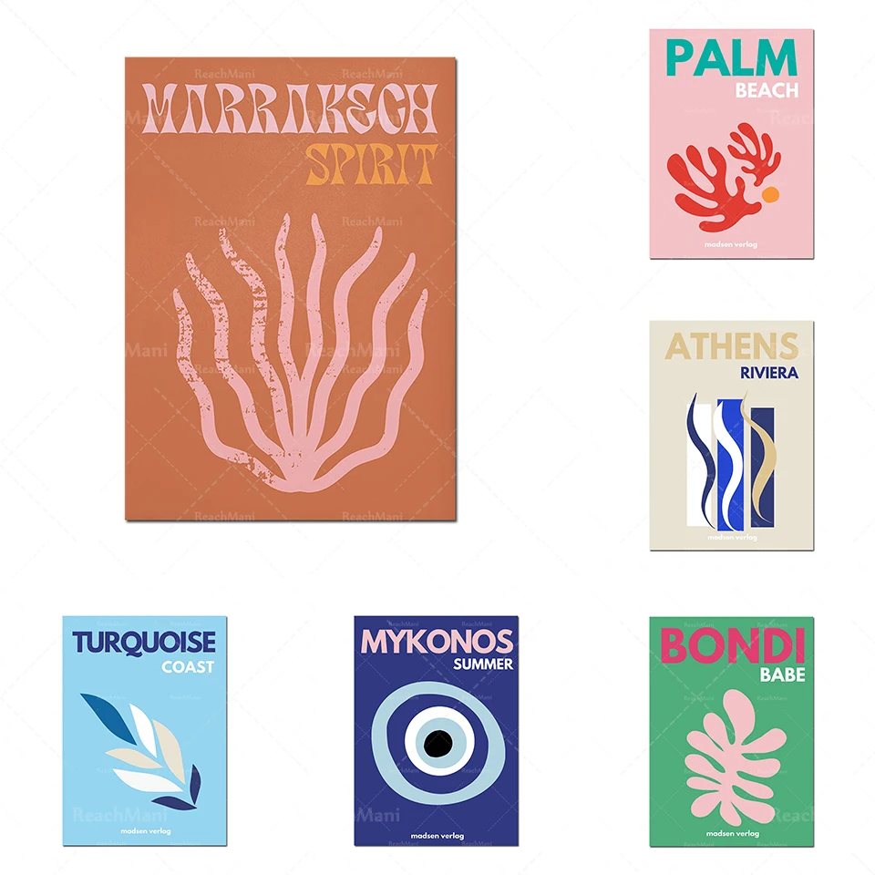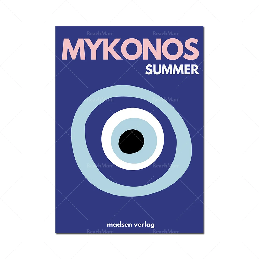 Набор печатных картин, Mykonos, домашний декор, принт с пальмой на пляже, путешествия, настенная галерея, современный холст, постер, уникальный g