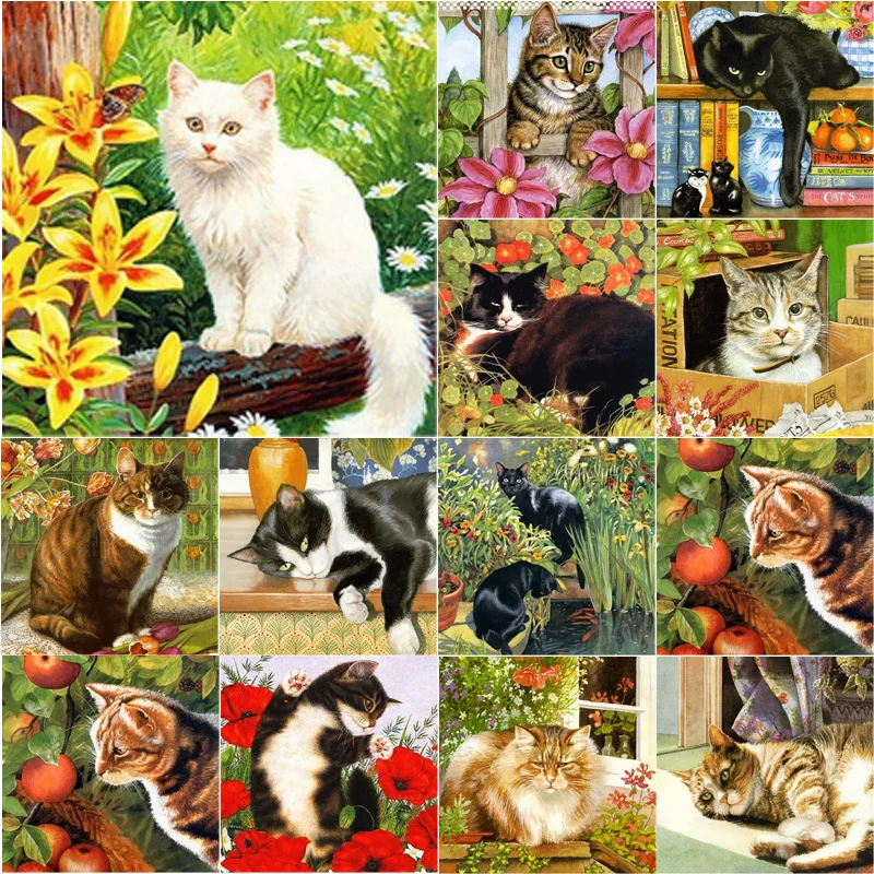 Алмазная 5D картина сделай сам с милым котом, алмазная вышивка, Цветочный пейзаж, вышивка крестиком, полная квадратная круглая картина, домашний декор, ручной подарок