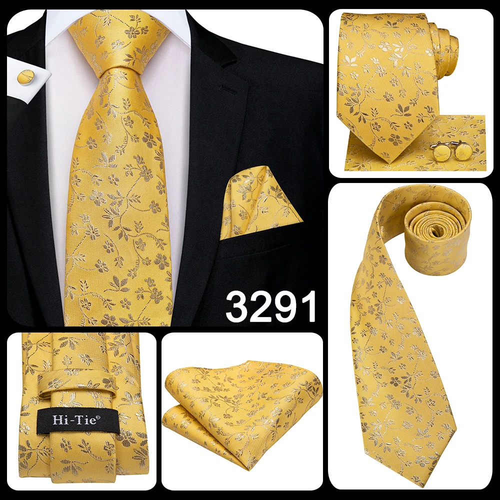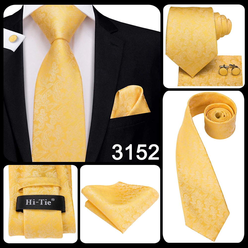 Hi-Tie Желтый Клетчатый Шелковый Свадебный галстук с пейсли для мужчин Hanky запонки подарок мужской галстук Gravata набор бизнес Прямая поставка дизайнер