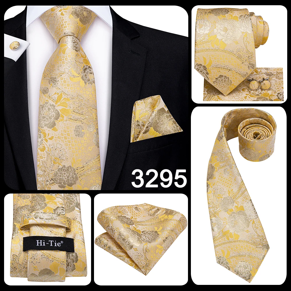 Hi-Tie роскошный цветочный Пейсли мужской желтый золотой галстук Gr...