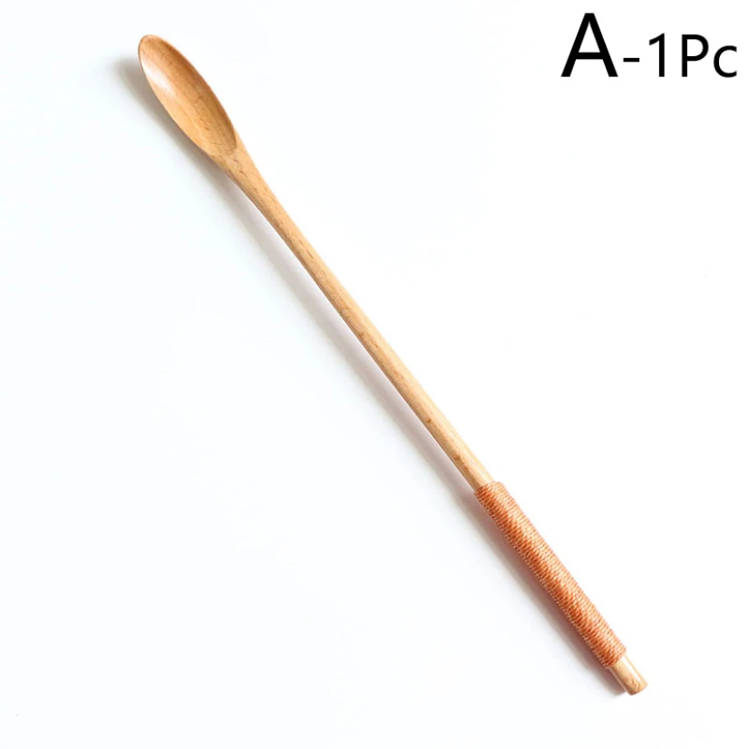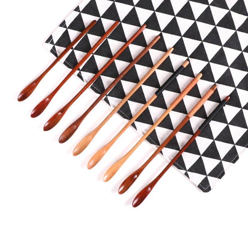 Маленькая деревянная ложка для кухни, кофейная ложка для мороженого, длинная ручка, запутанная перемешивание, японская кухонная утварь, деревянная винтажная посуда