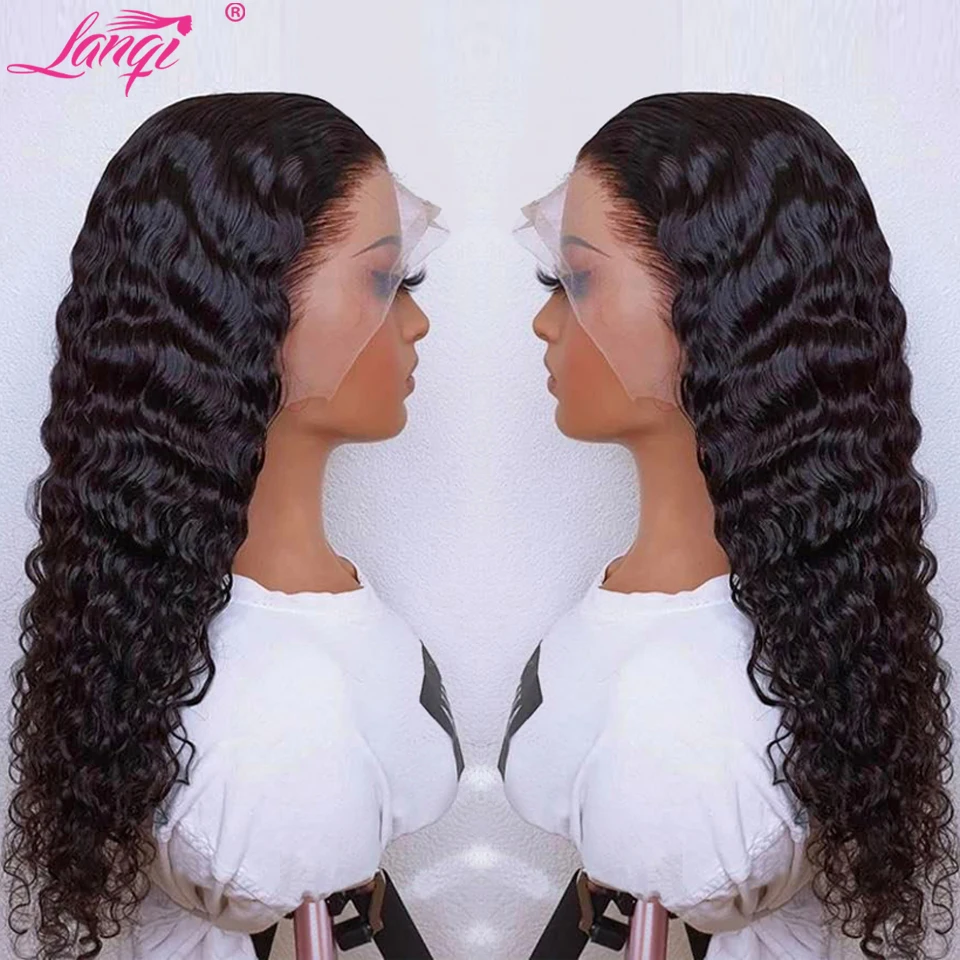Lanqi длинные 30-дюймовые глубокие волнистые Hd кружевные передние al парики 13x4x1 T часть парика бразильские предварительно выщипанные кружевные передние парики из человеческих волос для женщин