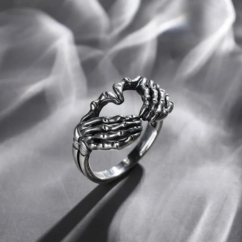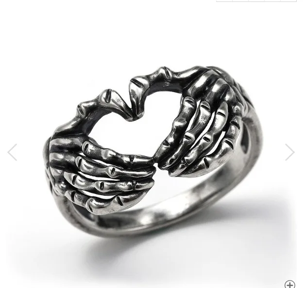 Мужские и женские кольца в стиле ретро, череп, рука с кольцом в форме сердца, креативная пара, индивидуальная из нержавеющей стали, панк, хип-хоп, украшения для вечерние