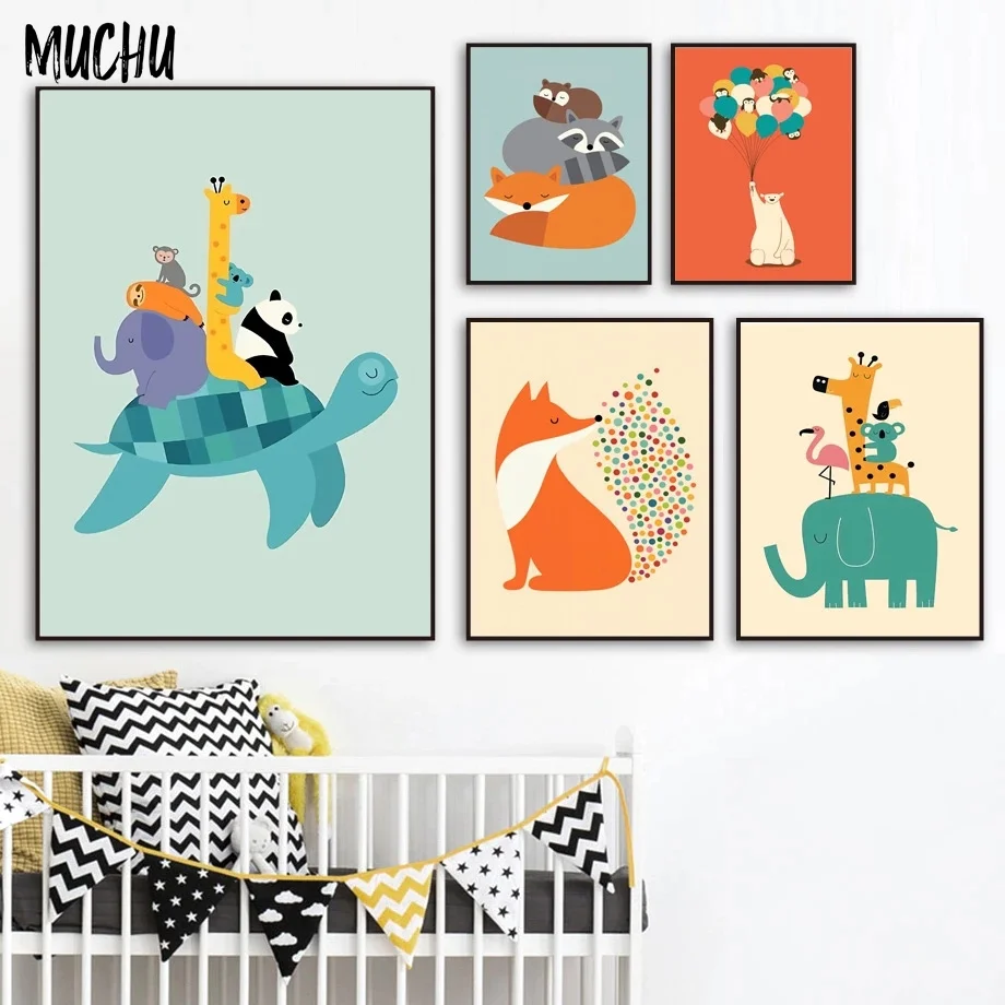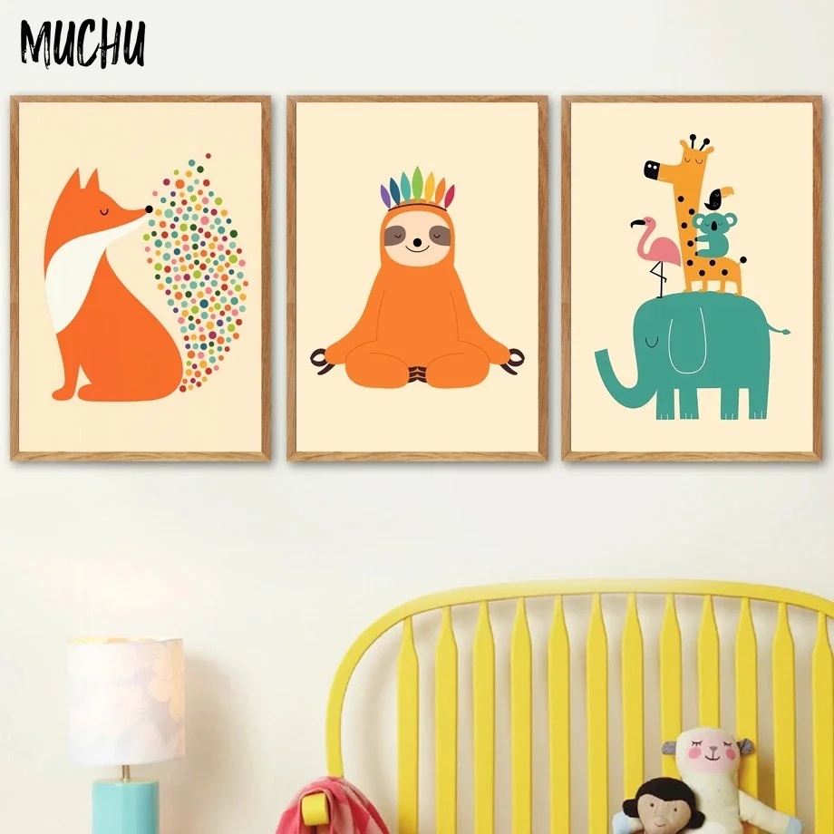 Холст для стен Lazy Koala, лиса, енот, постеры и принты в скандинавском стиле, Мультяшные настенные картины, декор для детской комнаты