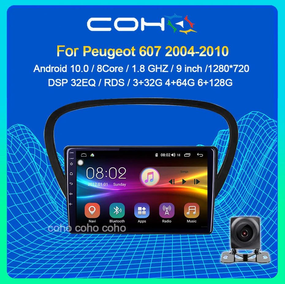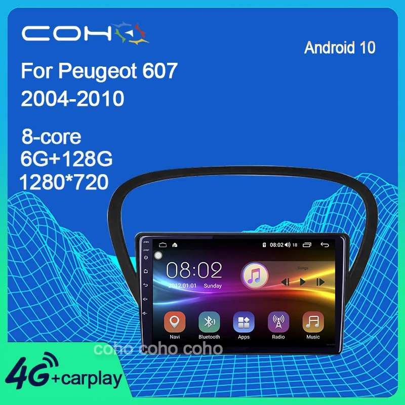 COHO для Peugeot 607 2004-2010 Android 10,0 4G Автомобильный радиоплеер навигация GPS Восьмиядерный 6 ГБ + 128 Гб радио мультимедиа