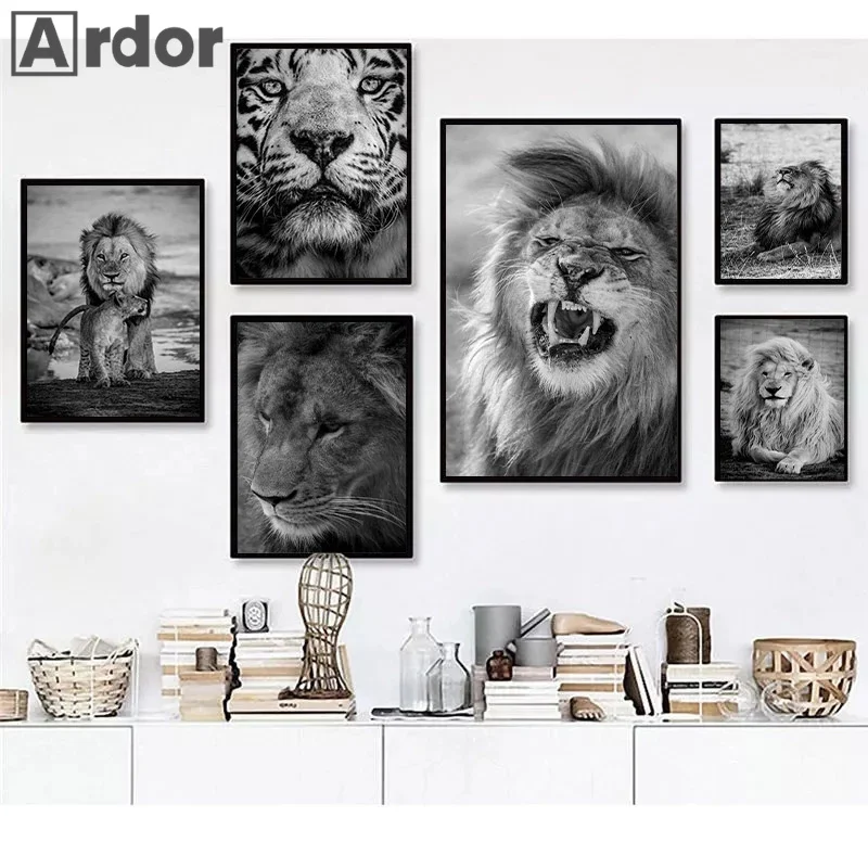 Современный настенный плакат с Львом, тигром, леопардом, слонами, дикой природы, животное, художественный принт, черно-белая Картина на холсте, скандинавский Декор для дома