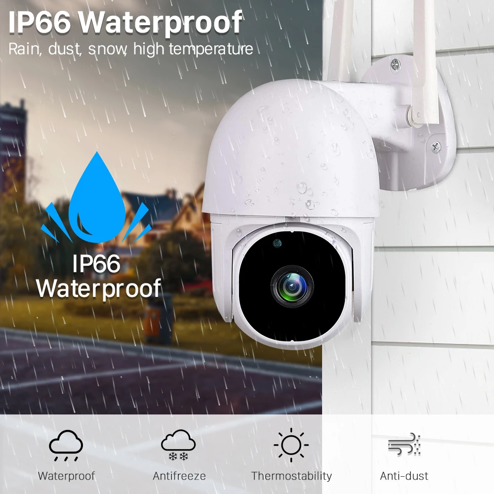 Разрешение HD 2MP/3MP/5MP для опции;3,6 мм объектив с фиксированным фокусным расстоянием;Водонепроницаемый уровень IP66;Поддержка 2,4 ГГц WI-FI;Поддержка до 128G TF карт памяти;Поддержка беспроводного подключения/проводного подключения;Поддержка двустороннего аудио в режиме реального времени (встроенный микрофон и динамики);Поддержка фото сигнализации на мобильный телефон app.AI распознавание и обнаружение человека; Автоматическое отслеживание человека;Поворот панорамирования, горизонтальная: 355 ° и вертикальная: 110 °;8 шт. массив светодиодов, дальность ночного видения 30 м;Поддержка P2P, просмотр и в любом месте и в любое время в приложении Tuya;Режим записи: нон-стоп запись, запись сигнала тревоги, запись таймера;Элегантный контур и простая установка;Рабочая среда: Окружающая среда-30 ℃ ~ + 60 ℃Влажность 10% ~ 90%, без конденсацииМатериал корпуса: АБС-пластик