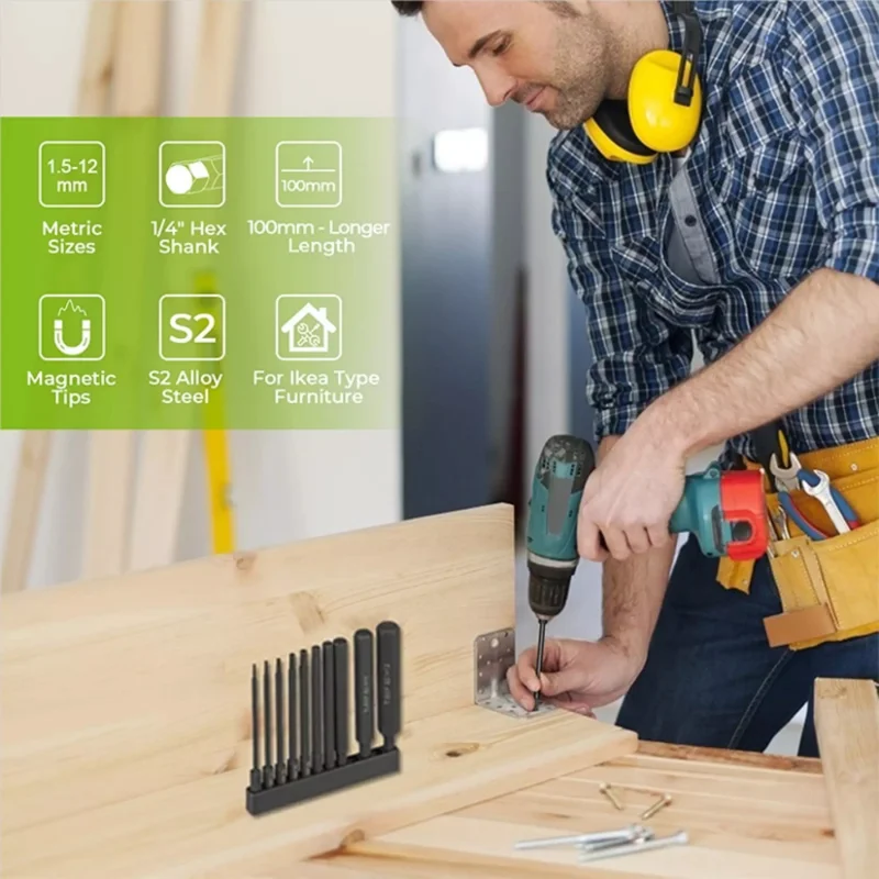 Количество и размер: 10 шт. 100 мм Метрическая Шестигранная головка размер шестигранной головки:1,5 мм, 2 мм, 2,5 мм, 3 мм, 4 мм, 5 мм, 6 мм, 8 мм, 10 мм, 12 мм