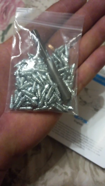 мелкие пиздюшки, вообще мелкие, если сравнивать даже со штатными шипами в шине. брал на снегоход но думаю толка нихУя не будет, ровно 100 штук пришло.