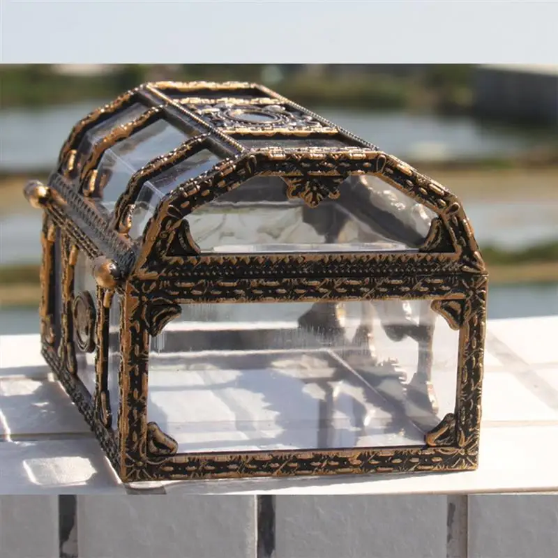 Шкатулка для драгоценностей в стиле ретро, пиратский рисунок, прозрачная пластиковая шкатулка для драгоценностей с кристаллами, органайзер, брелок на память, сокровище