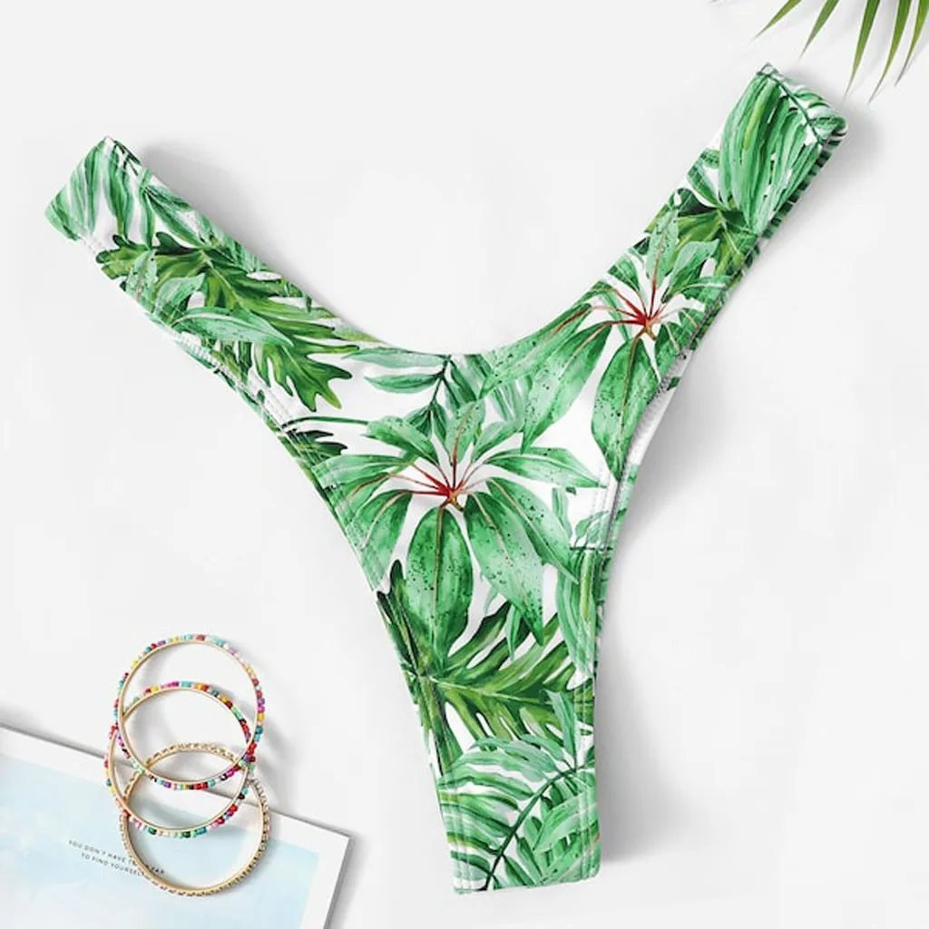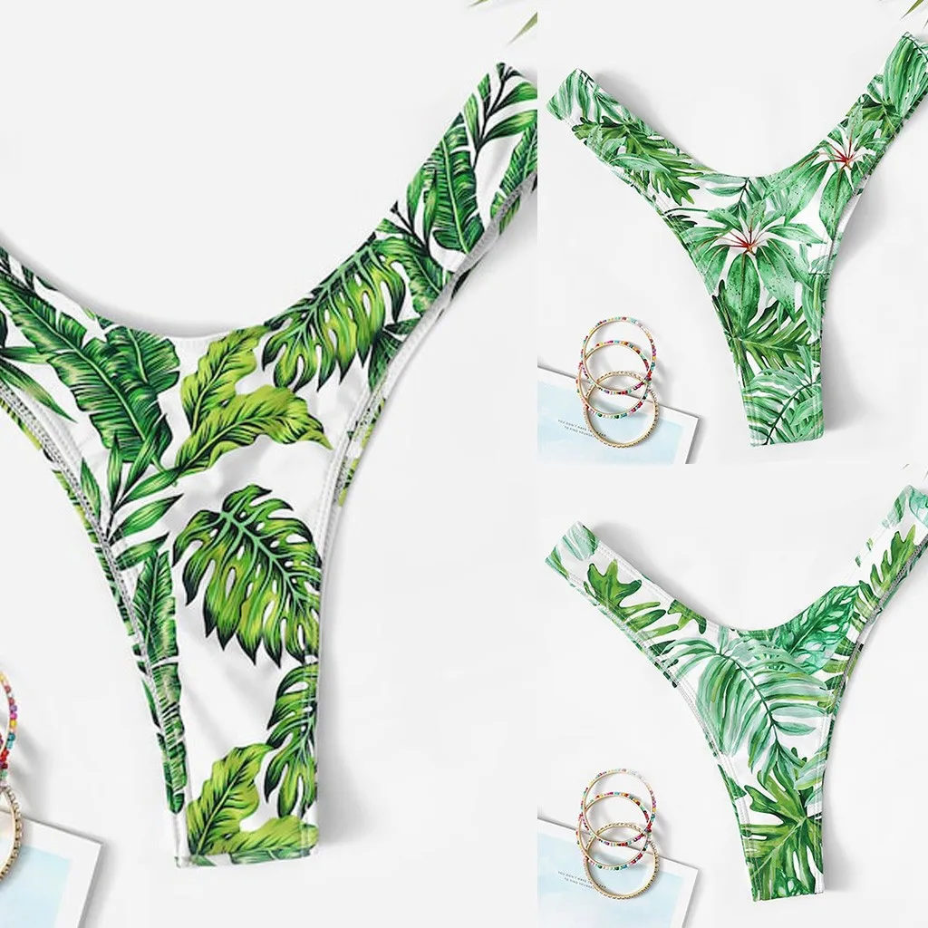 Шорты для плавания, трусы, женские сексуальные бикини, трусики, купальник с леопардовым рисунком листьев, Мягкий купальник, пляжная одежда с цветочным принтом, стринги