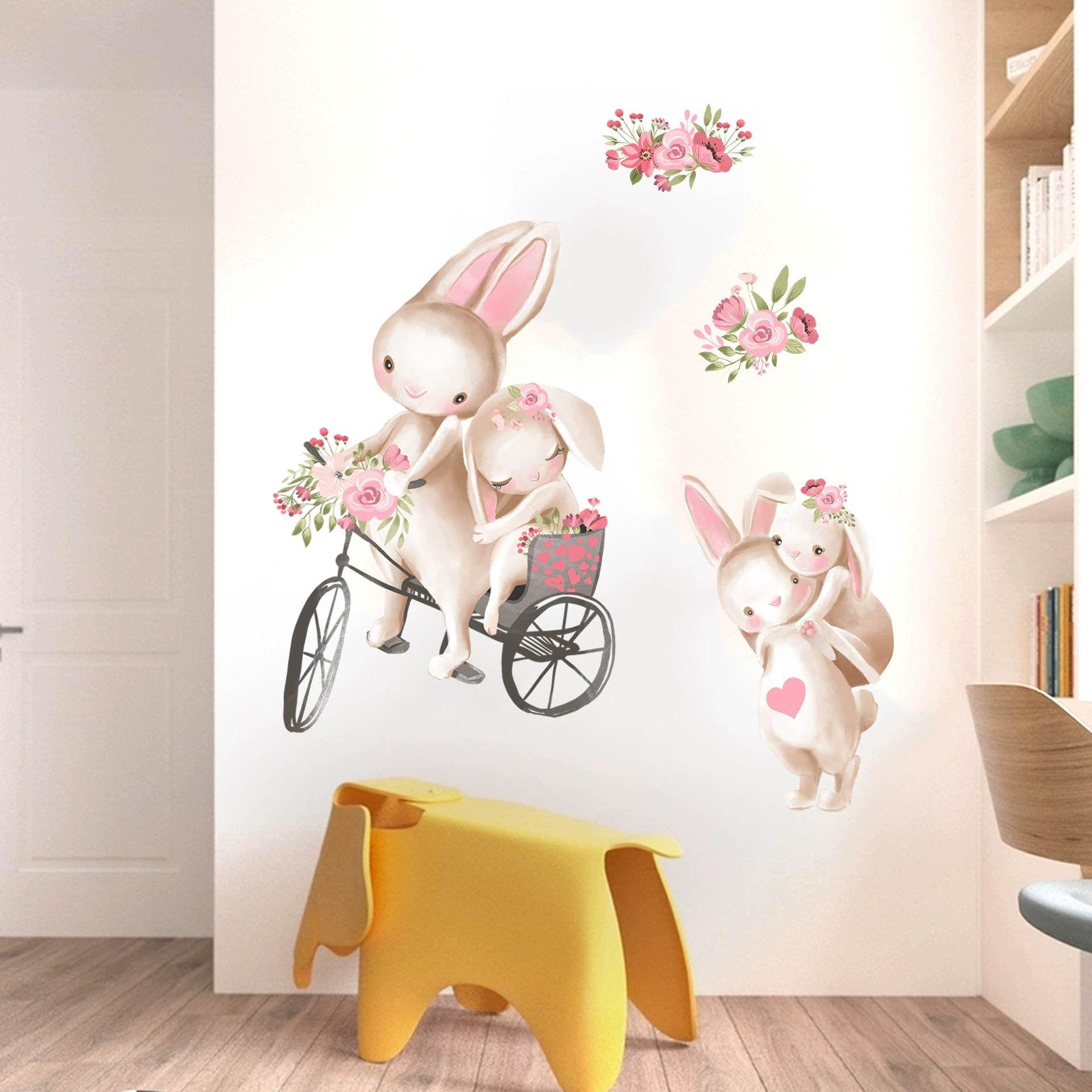 Милый кролик, цветок, настенные наклейки для детей, девочек, для де...