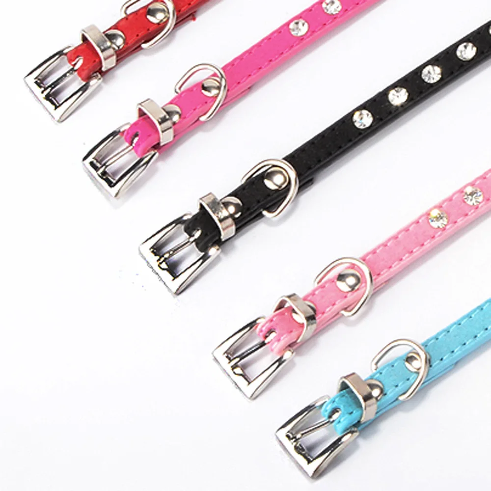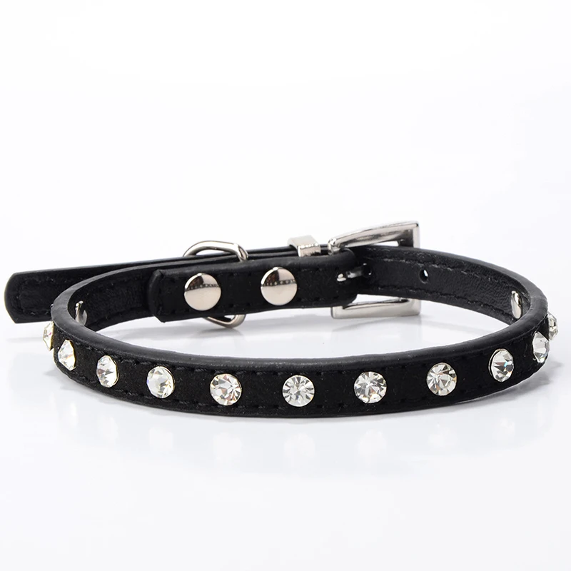 Мини-ошейник стразы из инкрустированной кожи Подходит для маленьких кошек и собак ошейники для домашних животных для прогулок на открытом воздухе аксессуары для собак