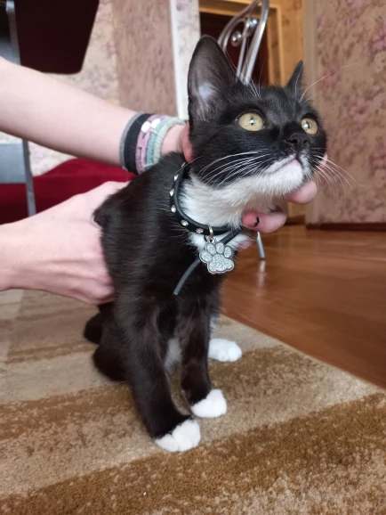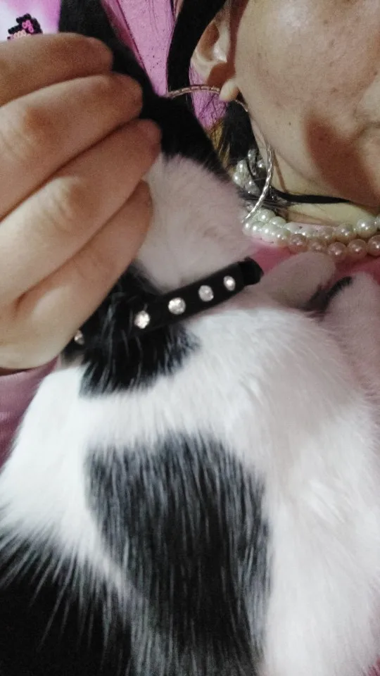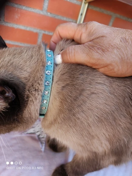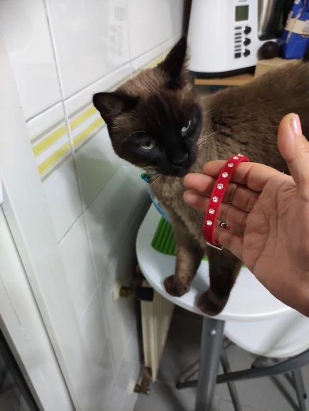 Ожерелье немного маленькое, оно слишком тугое для моей кошки. И что моя кошка не большая кошка. Я рекомендую купить его большим.