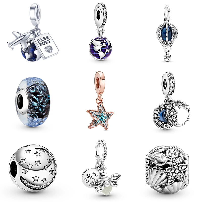 Лидер продаж, серебристые цветные летние бусины серии океан, синие ...