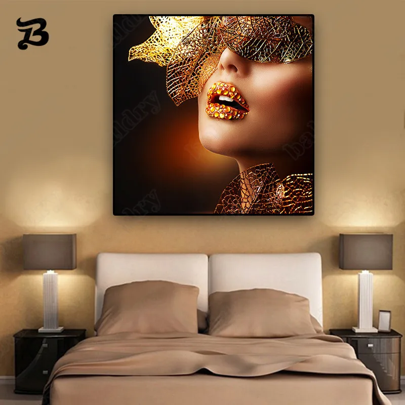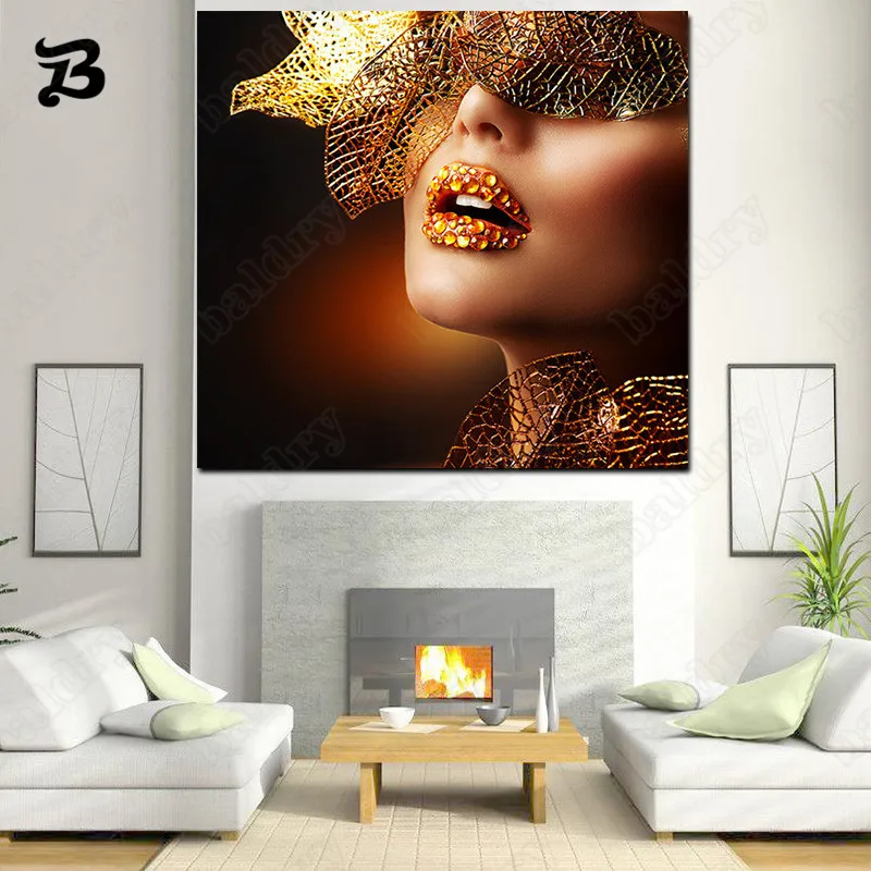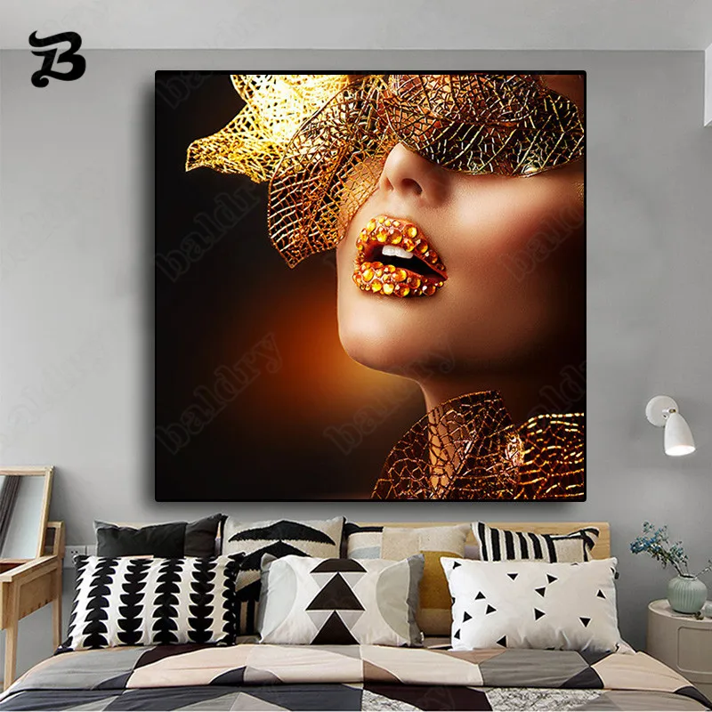 Картина на холсте, портрет в скандинавском стиле, современные Золотые губы, модная сексуальная женская картина маслом, Холщовый плакат, печать, настенное искусство, картина, декор комнаты