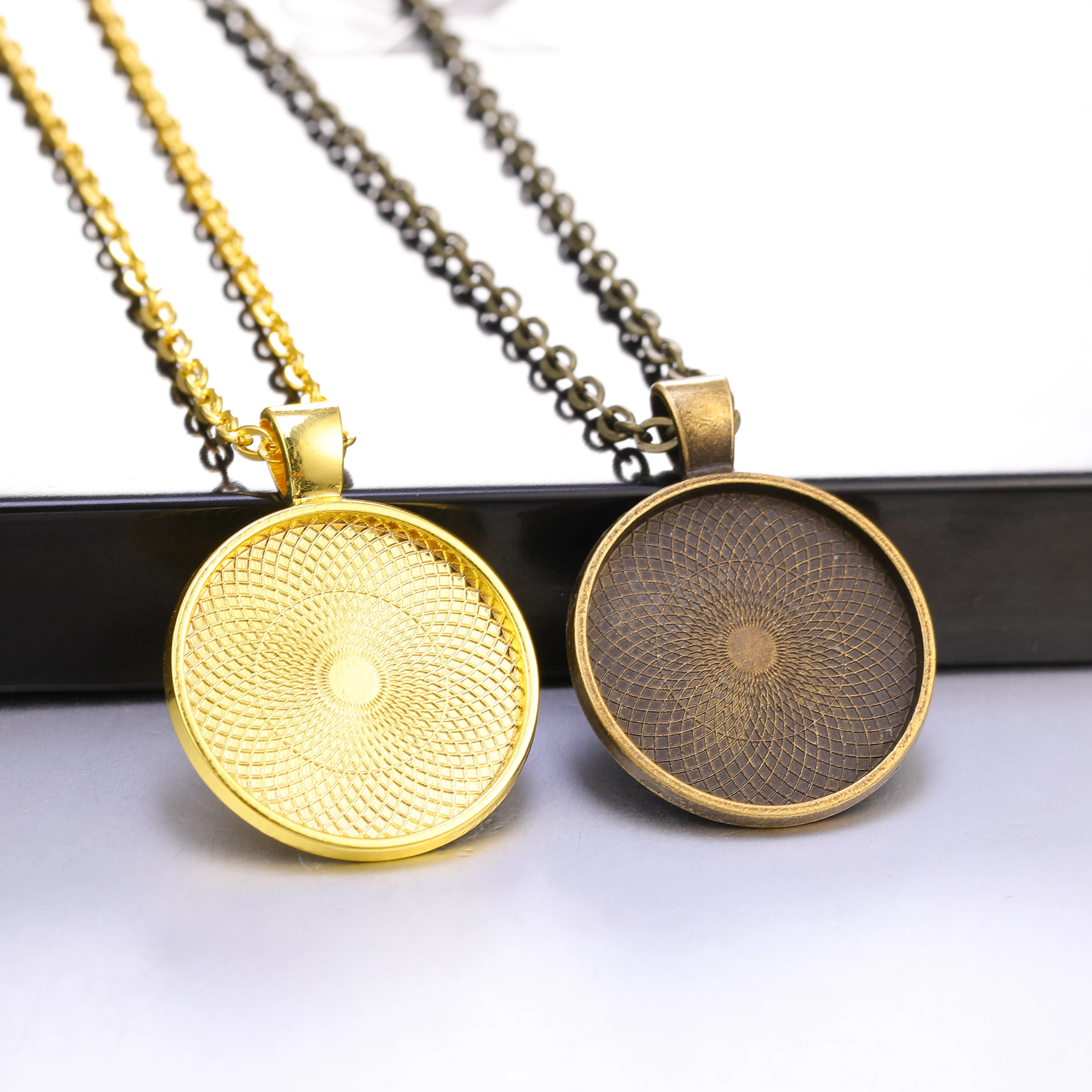 500 шт. "сделай сам" для изготовления ювелирных изделий, подвеска, ожерелье, амулеты с фокусным расстоянием 25 мм Пустой Базы для контроля уровня сахара в крови с 50 см омара застежка цепи лоток Ремесла поставок, оптовая продажа