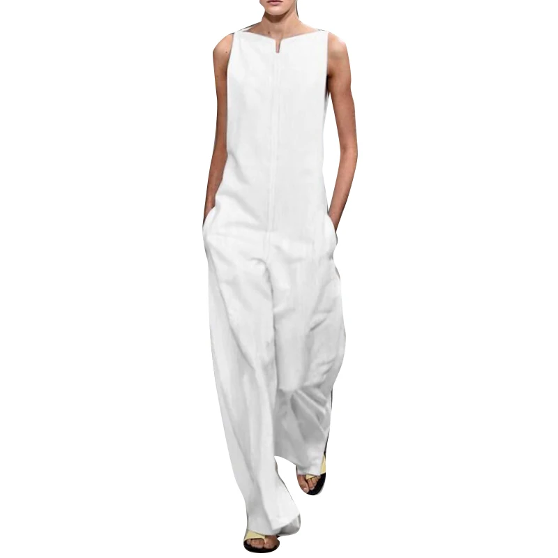 Комбинезон женский однотонный с широкими штанинами, с карманами, бе...
