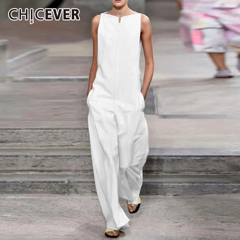 CHICEVER свободный черный комбинезон для женщин с v-образным вырезом без рукавов с высокой талией в стиле пэчворк повседневные однотонные Комбинезоны женские 2021 летняя одежда