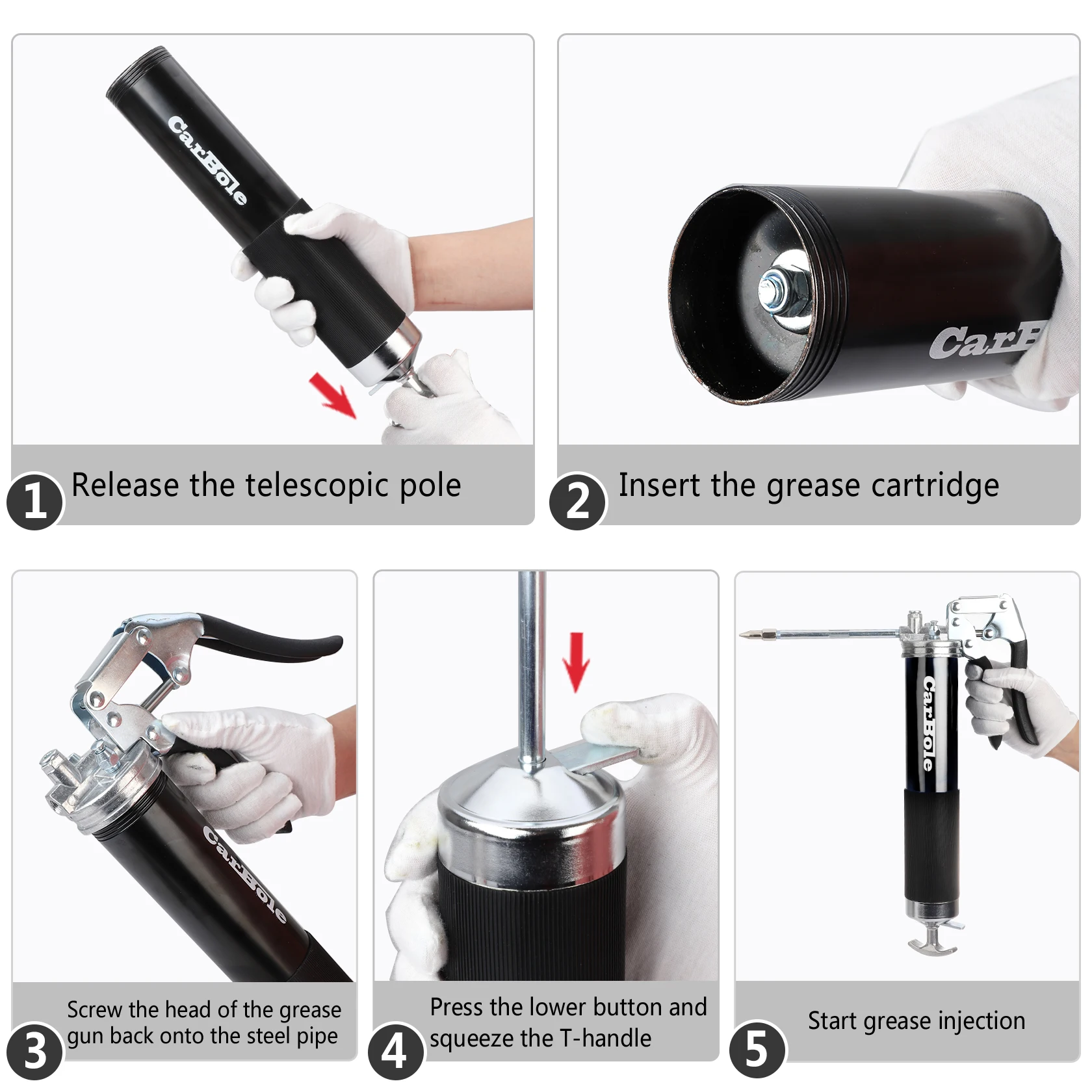 √ 1 x пистолет-ручка для смазки √ 1x12 "гибкий шланг √ 1 x Металлический удлинитель √ 1 x муфта для смазки √ 1 x Руководство пользователя